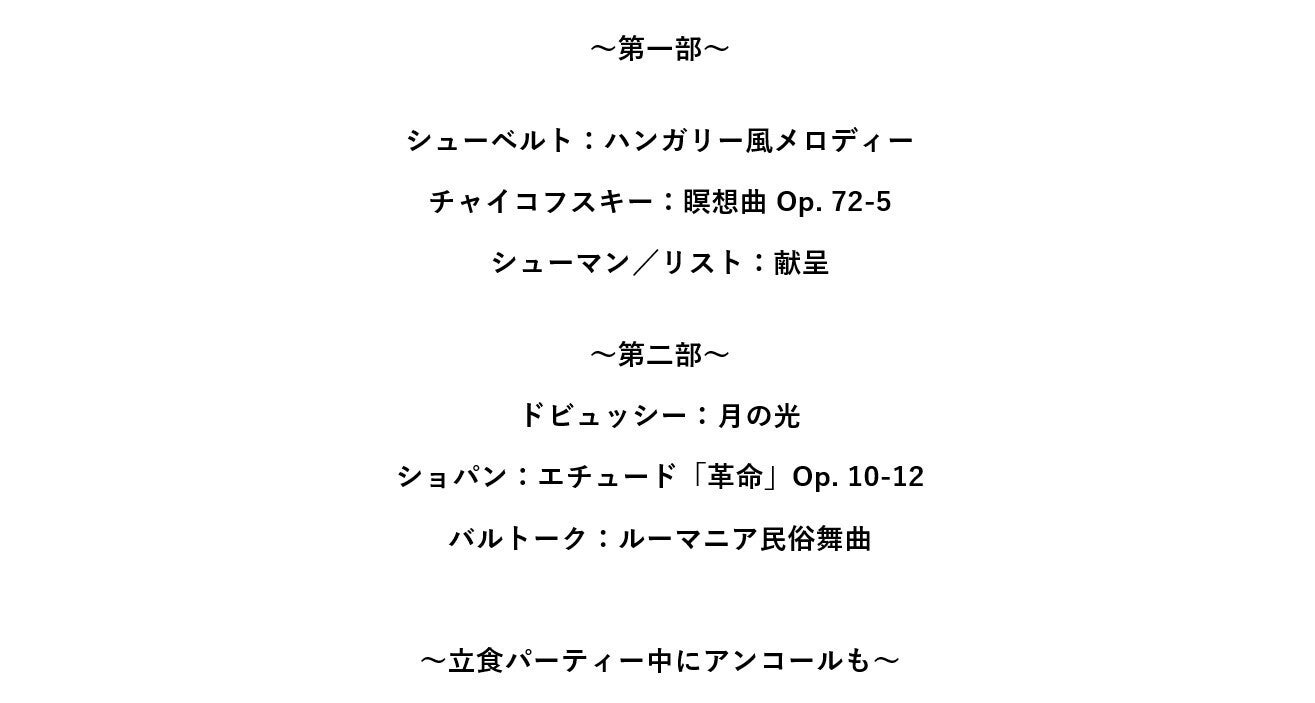 選曲はもちろん、向田さんです。ショパンのエチュード「革命」がショパンからリストに献呈された作品であることなど、すべてハンガリーに関わりがあり、向田さんの思い出の曲でもあります。曲紹介時の向田さんのお話から、ハンガリー、そしてヨーロッパの香りを感じていただけると思います。