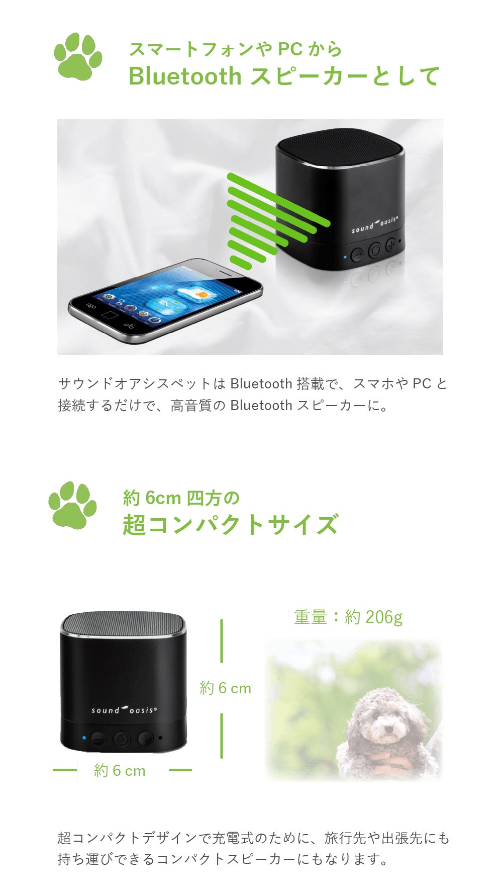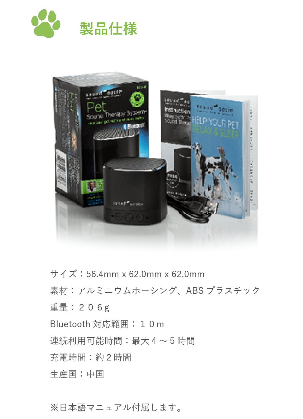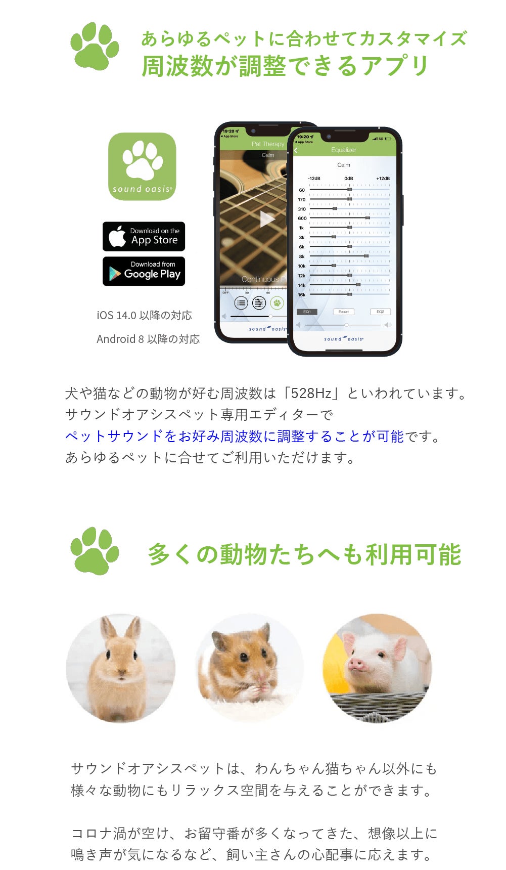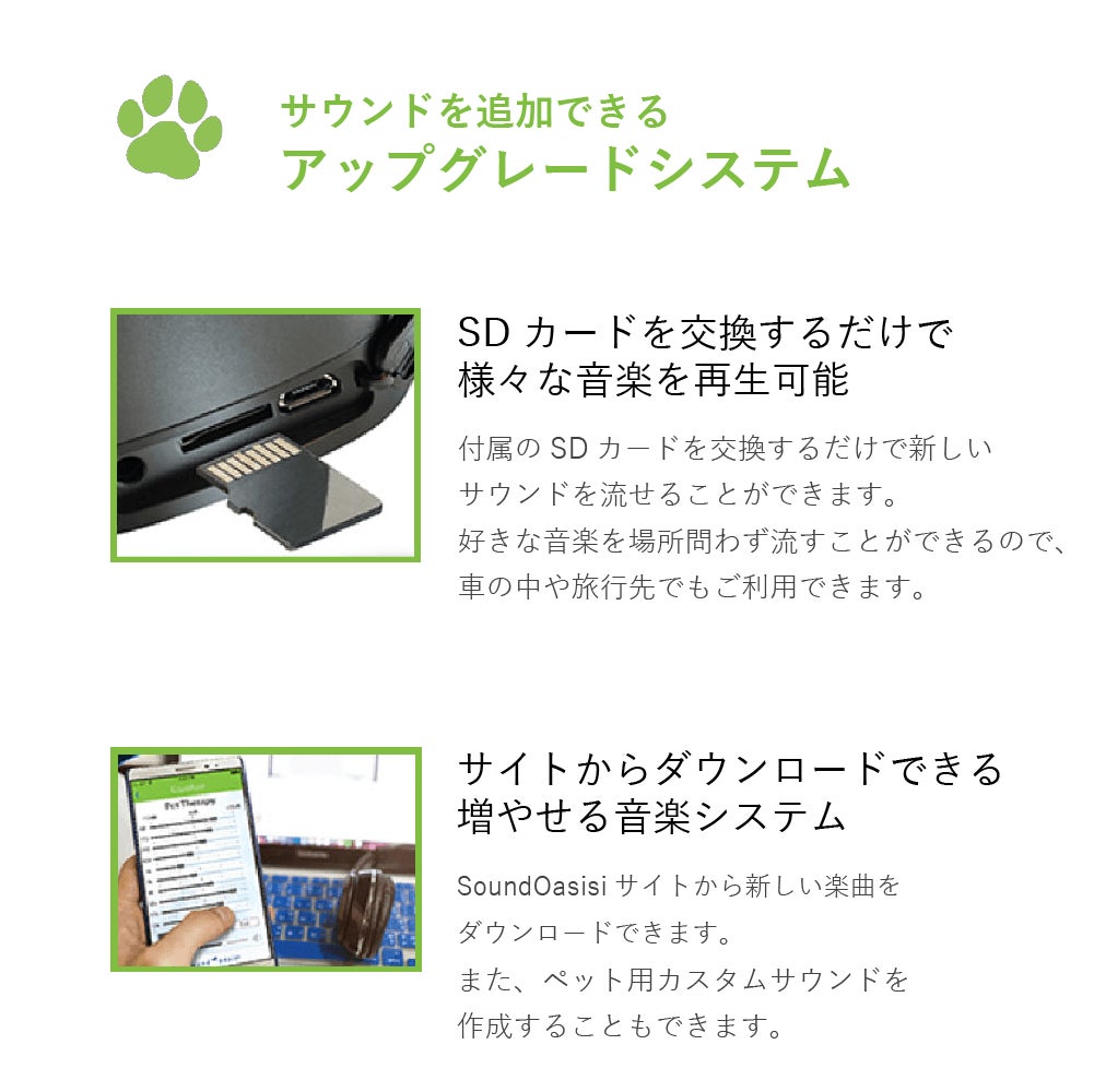 弊社が長年に渡りサウンドオアシス社の製品を取り扱ってきた大きな理由は、「音」の世界にこだわりぬいてきている実績です。「音」は、エンターテイメント、環境、など生活にかかせないものだと思っています。そして、その「音」にこだわり抜いてきたメーカーだからこそ開発できる製品が今回「ペット専用」のものとして発表できることになりました。
