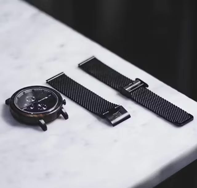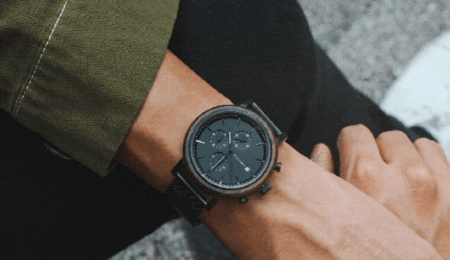 ChronoWXLは、内側のケースに湿気を防ぐブラックステンレス、外側には天然木の黒檀(ブラックサンダルウッド)を使いました。