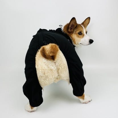 おしり開口部を縦長く設けることで、断尾したコーギーもスムーズに用を足し、汚れが付着しないように設計しました。