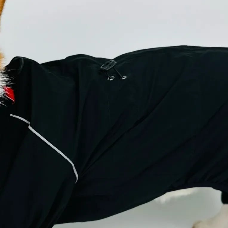 同じ胴長のコーギーでも体型はいろいろ、身幅を自由に調整できる調整ゴムを付けて、ピッタリ、きれいなシルエットで着こなせる工夫をしました。ストレッチゴムのため、締め付けがない設計になります。