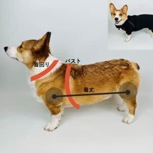 ソフトメジャーでサイズを測量いただくことをおすすめします。 (写真のモデルコーギーは13㎏ Sサイズ着用)