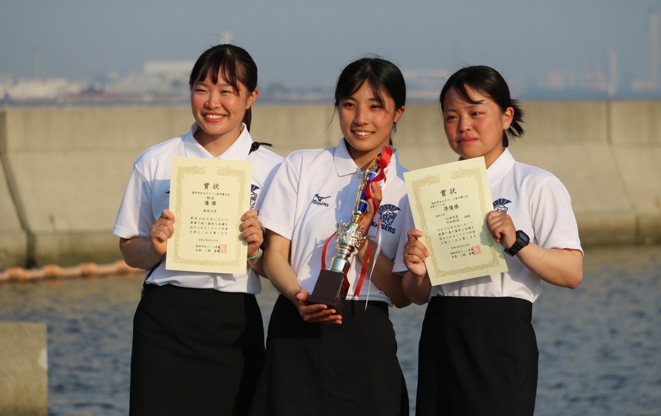 昨年度は、関大ヨット部として関西女子インカレで団体優勝を果たし、全日本女子インカレでも奮闘いたしました。今年度も、昨年度に続き関西女子インカレ団体優勝と連覇することができましたので、関西優勝校として、全日本インカレでも結果を残す事ができるよう精一杯務めてまいります。