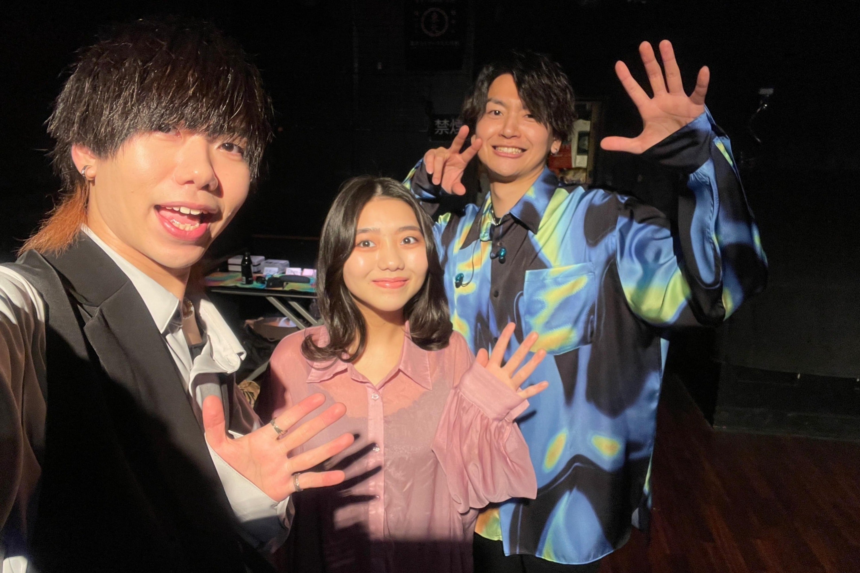( 写真左から、Dr.きょん、Vo.くに、Ba.がみの3人組です。)