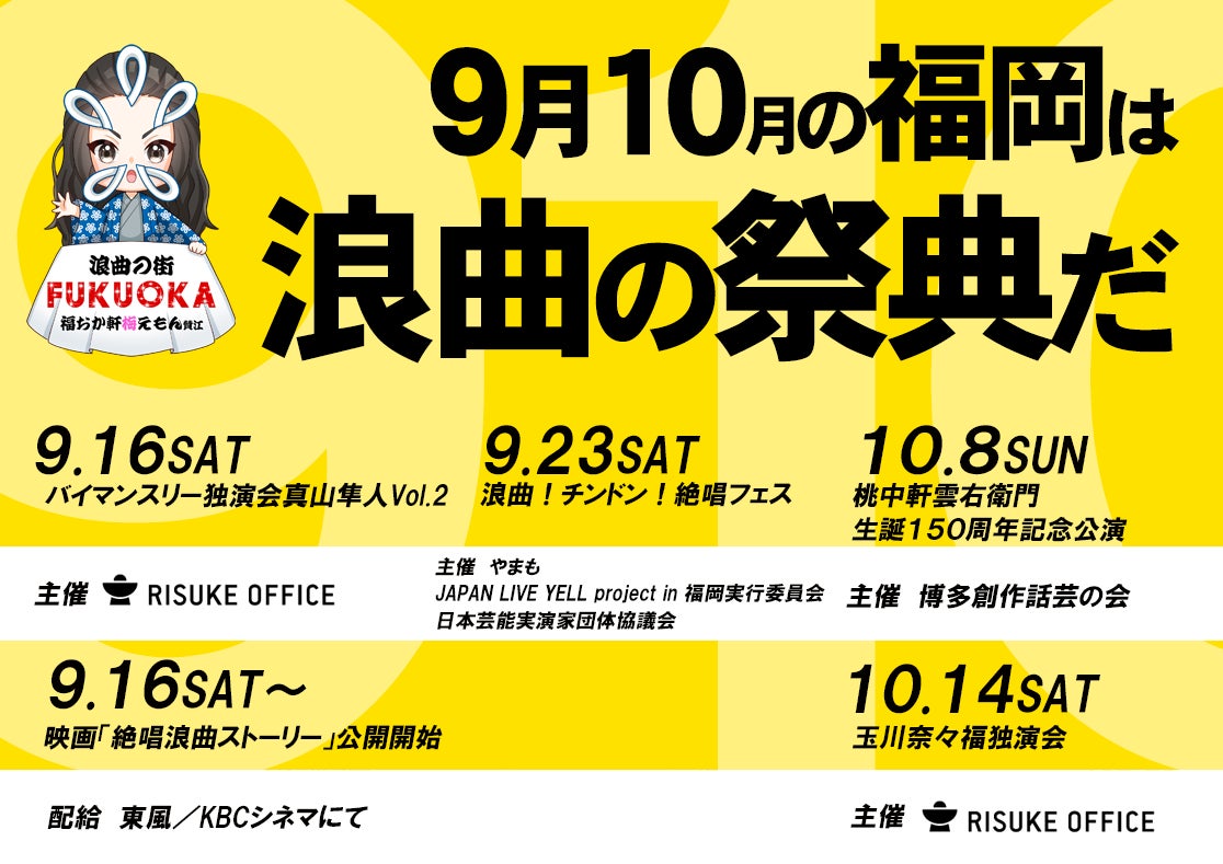 供給過多に関しては、心苦しいですが自分の公演を減らす事で自分自身の出血も抑えなくてはいけないし、利助オフィスさんも隔月隼人会が成功しないと以降、浪曲公演の開催は消滅・・・威勢のいい事言って始めた「浪曲の街・福岡」ですが、その現状はかなり危機的であり、だからこそ今回のチャンスは2度とないかもしれないし、この機会を逃してはいけない!と思うのですが・・・来年以降はこのクラファンと12月の公演でなんとか公演継続の目処をつけて、細く長く地道に、初心に立ち返って浪曲の魅力を伝えていくのが「浪曲の街・福岡」作りのあり方なんだと思います。浪曲に詳しくない人にも、福岡ゆかりのエンタメが福岡で消えようとしている現実だけでも共有して頂けると幸いです。