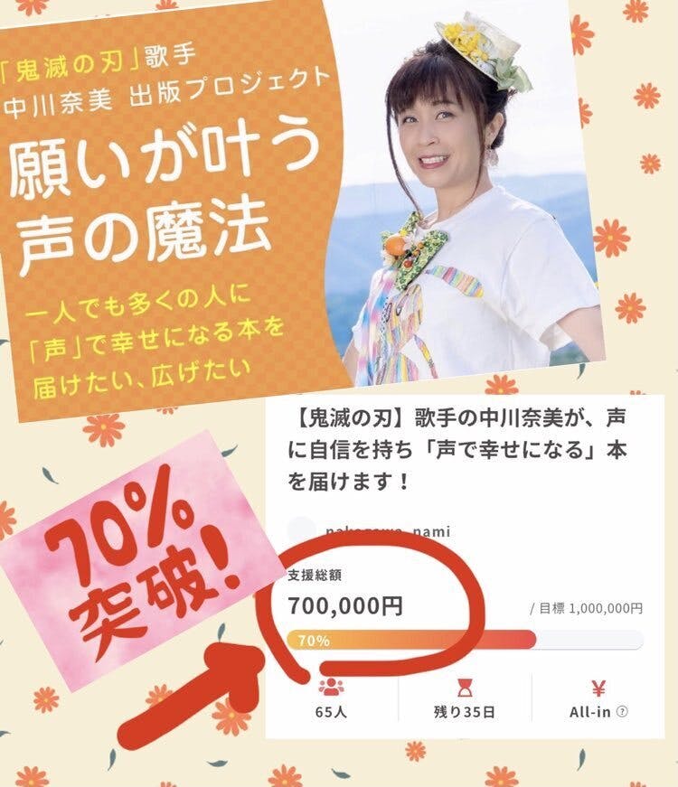 70%を達成しました、本当にありがとうございます!!!