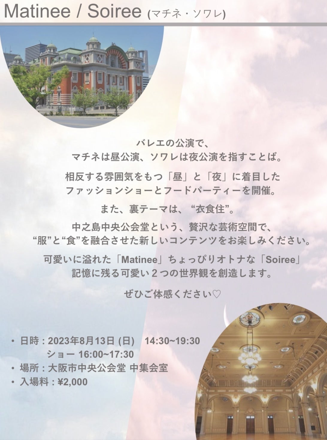 私たちは、『ファッション』×『フード』を融合させた新感覚のイベント『Matinee / Soiree(マチネ・ソワレ)』を開催します。