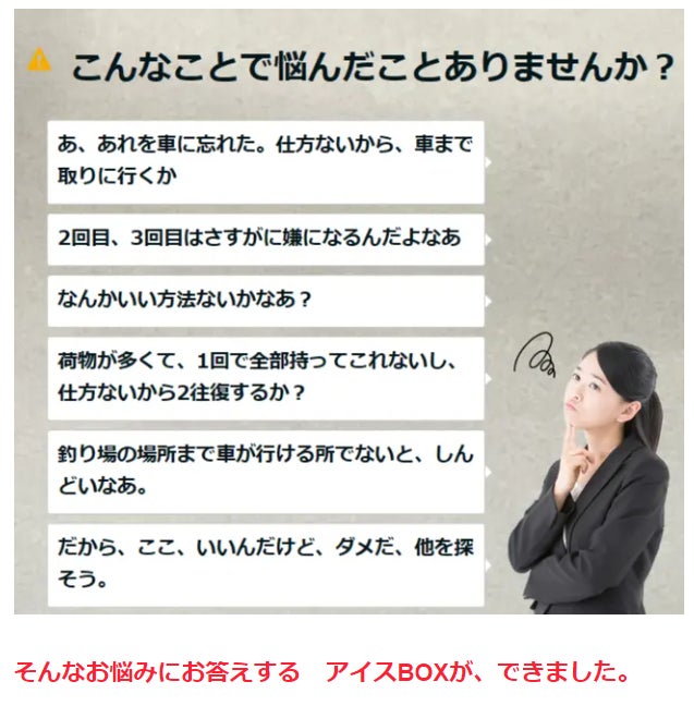 釣り竿と、このアイスBOXを持って、釣り場まで歩いたら、