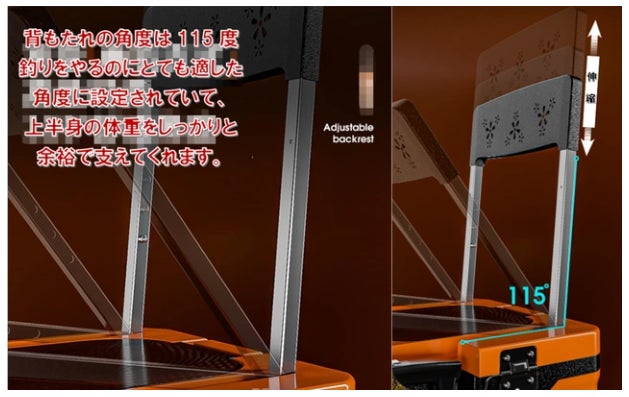 伸縮する背もたれがついているので、アイスBOXに坐って、ゆったりと快適な釣りを満喫することができます。