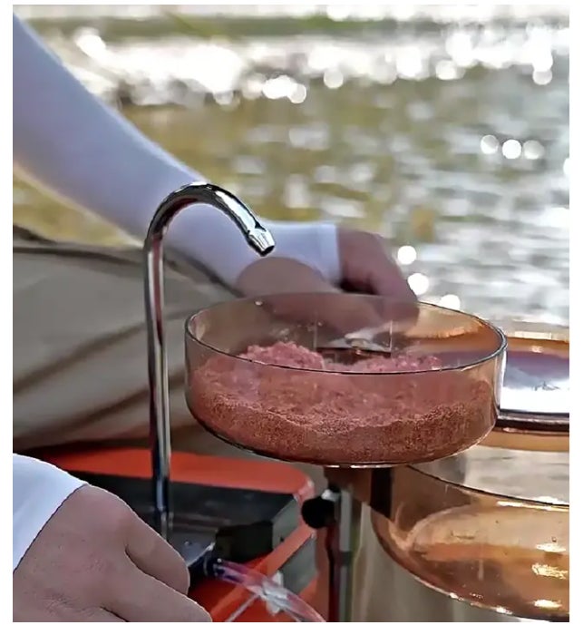 網のかごを水の中に入れて、釣れた魚を中に入れて、泳がせておきます。
