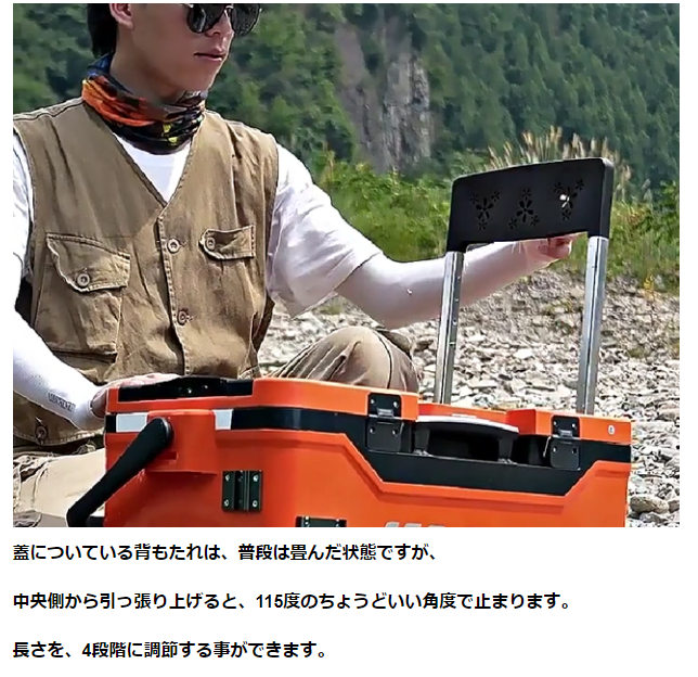 伸縮する背もたれがついているので、アイスBOXに坐って、ゆったりと快適な釣りを満喫することができます。