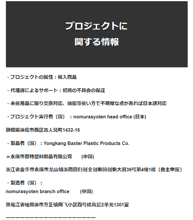 ※本文中に記載させていただいたスケジュールは、あくまでプロジェクト公開時点の予定です。プロジェクトの性質上、配送遅延のおそれがございます。