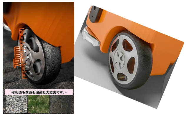 しかも、大きなキャスターがついているので、凹凸のある所を、