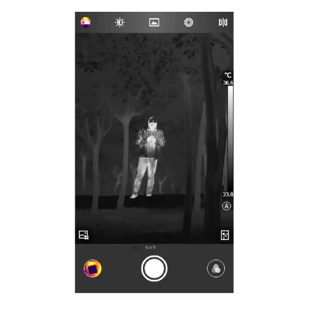 また専用アプリを使えば、サーモグラフィやナイトヴィジョンで映し出した画像を写真や動画として記録できます。商品広告で温度の違いの証明や、SNSなどの動画投稿などでサーモグラフィやナイトヴィジョンの画像を使えば、説得力も注目度もワンランクアップします。