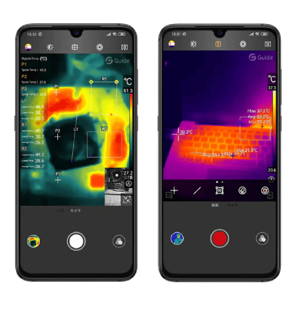 Mobirシリーズは業務用のサーモグラフィ画像処理に於いて中国のトップ企業の一つ、Guide Infraredの完全子会社Wuhan Guide Sensmart Tech Co.Ltd.が生産しています。Guide Infraredは中国のコロナ対策として、空港などで群衆の体温を瞬時に、しかも個別に測定する赤外線感知型の非接触体温測定器を30万台も納品しており、その実力や評価は折り紙付き。