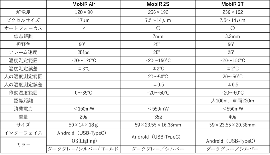 Mobirシリーズの赤外線カメラは、同社のコロナ対策用のサーモグラフィ技術を個人レベルで扱えるようにスマホ用として転用したもの。そのため機能は業務用に匹敵します。巷にある玩具やお遊び程度の性能ではありません!