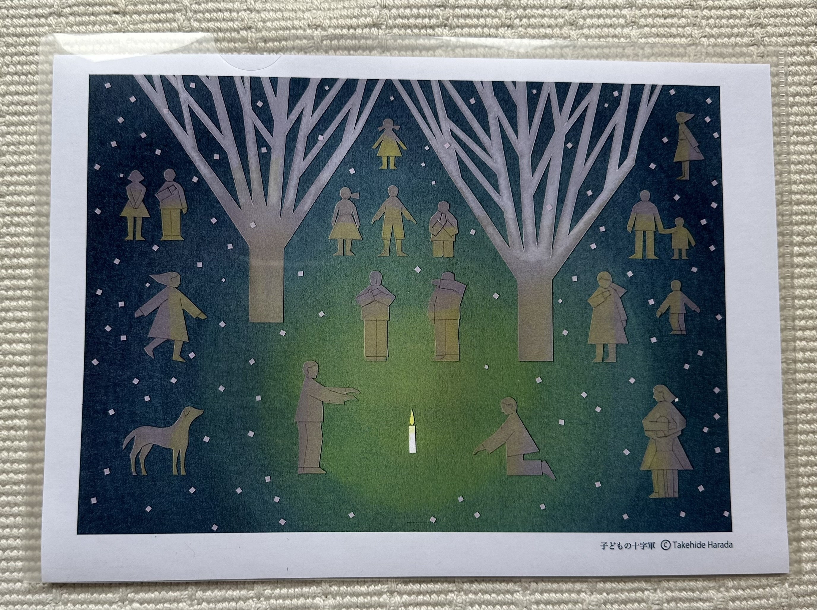 戦場の軍隊に従い、幌車を引きながら商売をする母とその家族の戯曲「胆っ玉おっ母とその子どもたち」。この公演の宣伝美術のデザインに携わったのは、はるか昔(2008年シアター1010 西川信廣演出・草笛光子主演)。そして今回「子どもの十字軍」の絵本。ブレヒトと再び出会いの機会をいただいた。戦争の中でもひとの暮らしはある。絶望の中でも今日という日をとにかく生きなくてはならない。大人であっても子どもであっても。思い出した!「肝っ玉」の中で軍の奇襲を知った娘のカトリンは、子どもたちを救おうと町に急を告げる太鼓を屋根の上で打ち鳴らし続けて射殺されるのだった。「子どもの十字軍」の子どもが川べりで叩く太鼓は、カトリンが残した太鼓だったのかもしれないね。「子どもの十字軍」(ベルトルト・ブレヒト作 はらだたけひで訳)の子どもたちには名前がない。隊長の子、作戦担当の子、お母さん役の11歳の少女、ビロードのえりの服を着たユダヤ人の子。役割りや年齢や着ている服の説明はあるけれど「その子の名前」はない。だから、かわいそうな○○ちゃんの話しではない。○○ちゃんだけの話しではない。誰でもが隊長になるかもしれない。わたしも隊長になるかもしれない。行くべき道がわからず、降りしきる雪の中で途方に暮れるかもしれない。https://twitter.com/kanekoyu/status/1679360229501448193?s=46&t=Lox3Aa_spB57vopttoXlPw