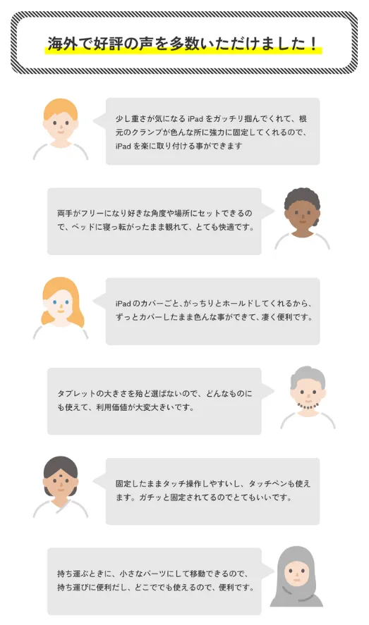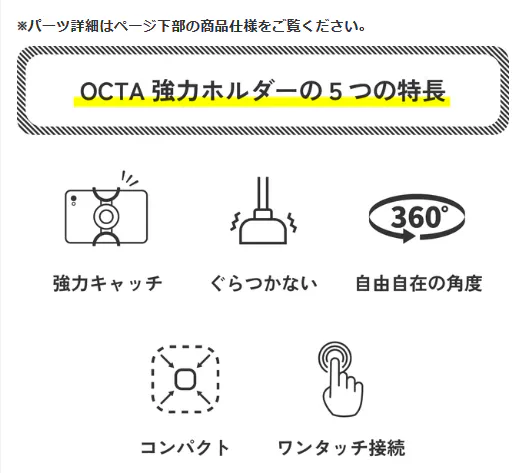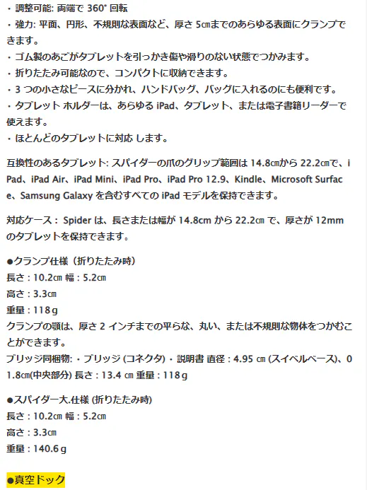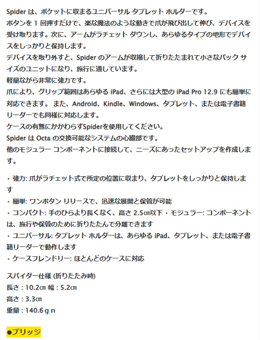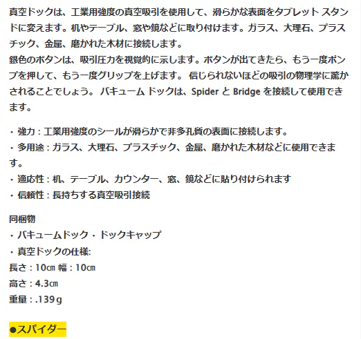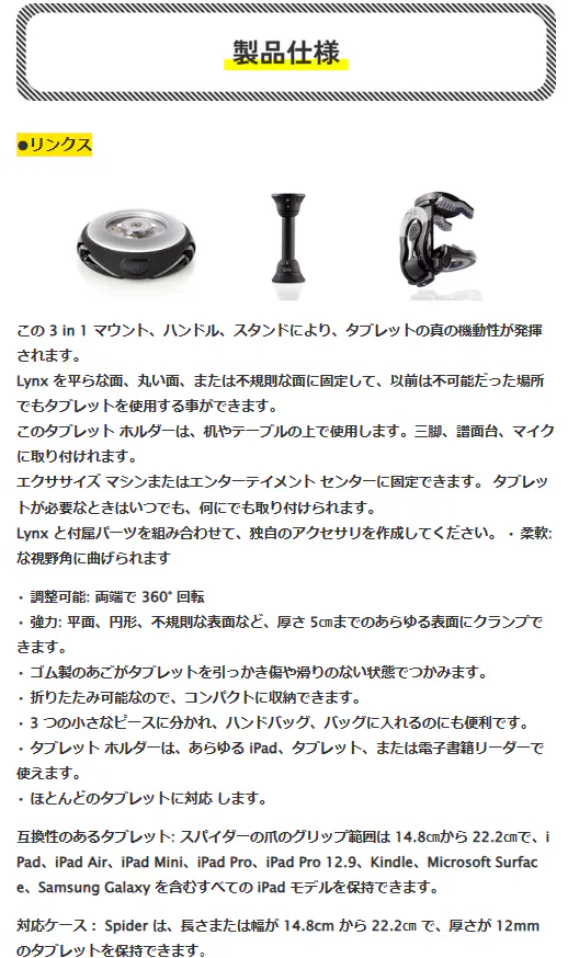 「スパイダー」が、タブレットの大きさを問わず、カバーケース ごと強力に掴んで離さない。