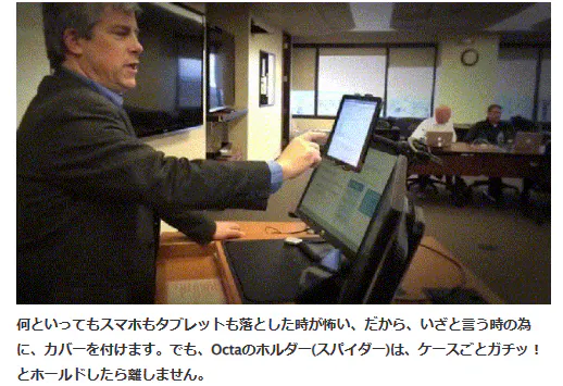 皆さんこんにちわ。nomurasyoten野村浩です。今回はアメリカのメーカーさんです。デンバーに本社があり、どんなタブレットもカバーごとガチッと掴んだら離さない、今迄のタブレットスタンドをスタンドと呼ばない新しいタイプの大変便利なタブレットホルダーをご紹介します。