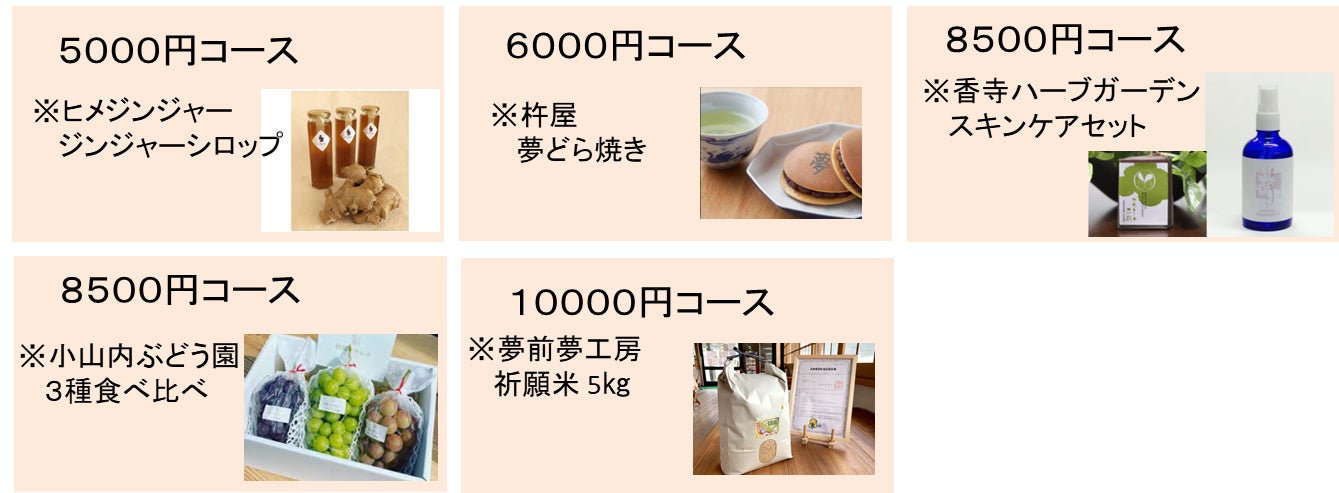 ▼ゆめ街道づくり実行委員会メンバーの特産物で支援するコース