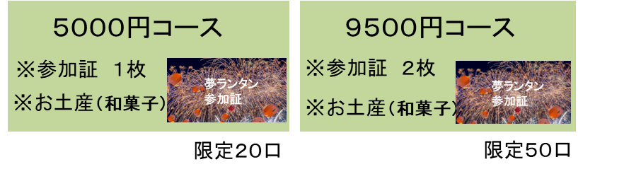 今回は夢ランタン250個とイベントのフィナーレに花火100発を上げたいと思います。