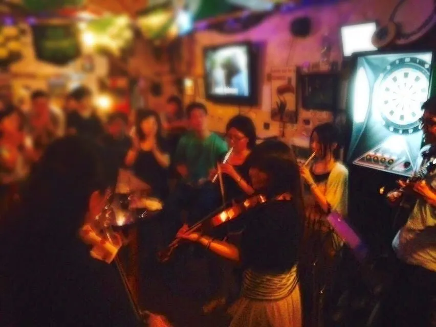 ★冒頭の写真は、結成初期に定期ライブをさせていただいていた、難波の味園ビルにあったアイリッシュパブ『ザ リトルクローバー』での演奏風景です。