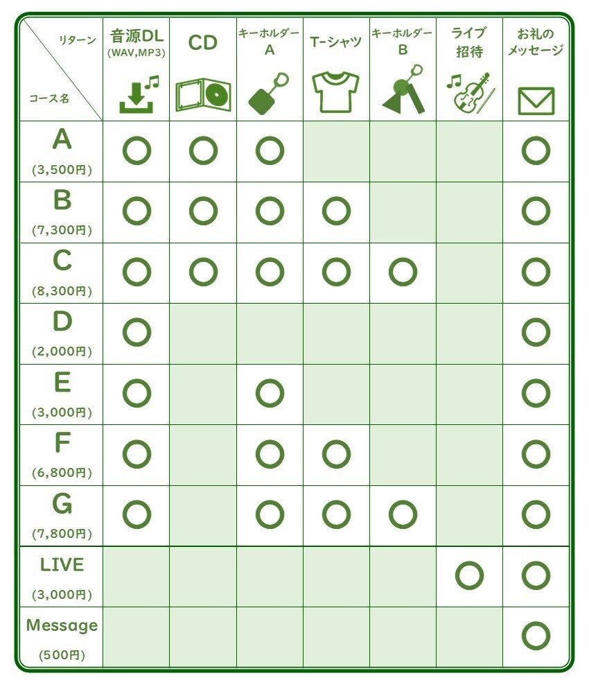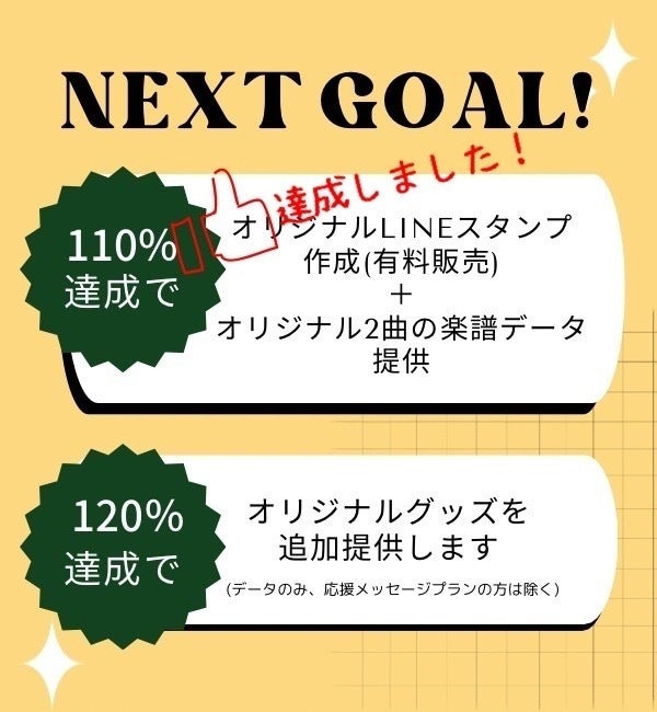 ★オリジナルグッズ … 目標金額120%達成で、オリジナルグッズ付きプラン(A,B,C,E,F,G,ライブプラン)の支援者様全員に追加で提供いたします!(Dデータのみプラン、メッセージのみプランの方は除きます) 何になるかはお楽しみに!