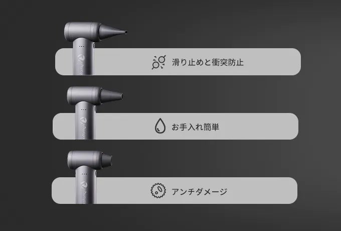 Anymotor には 108000rmp/分で動作する強力なモーターが内蔵されています。高速高圧での送風が可能なため、水分をすばやく乾燥させることができます。