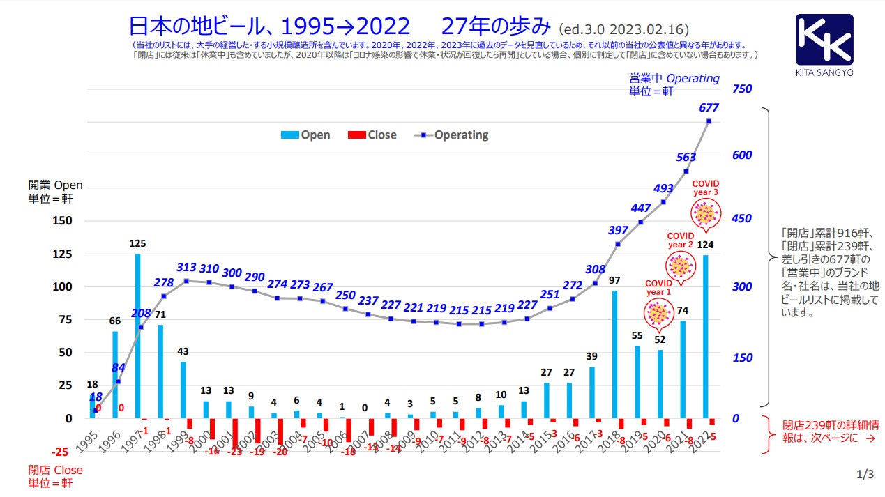 ・国内でも2013〜2022年にかけてクラフトビール消費量は3倍以上、醸造所数は増加傾向にあります。