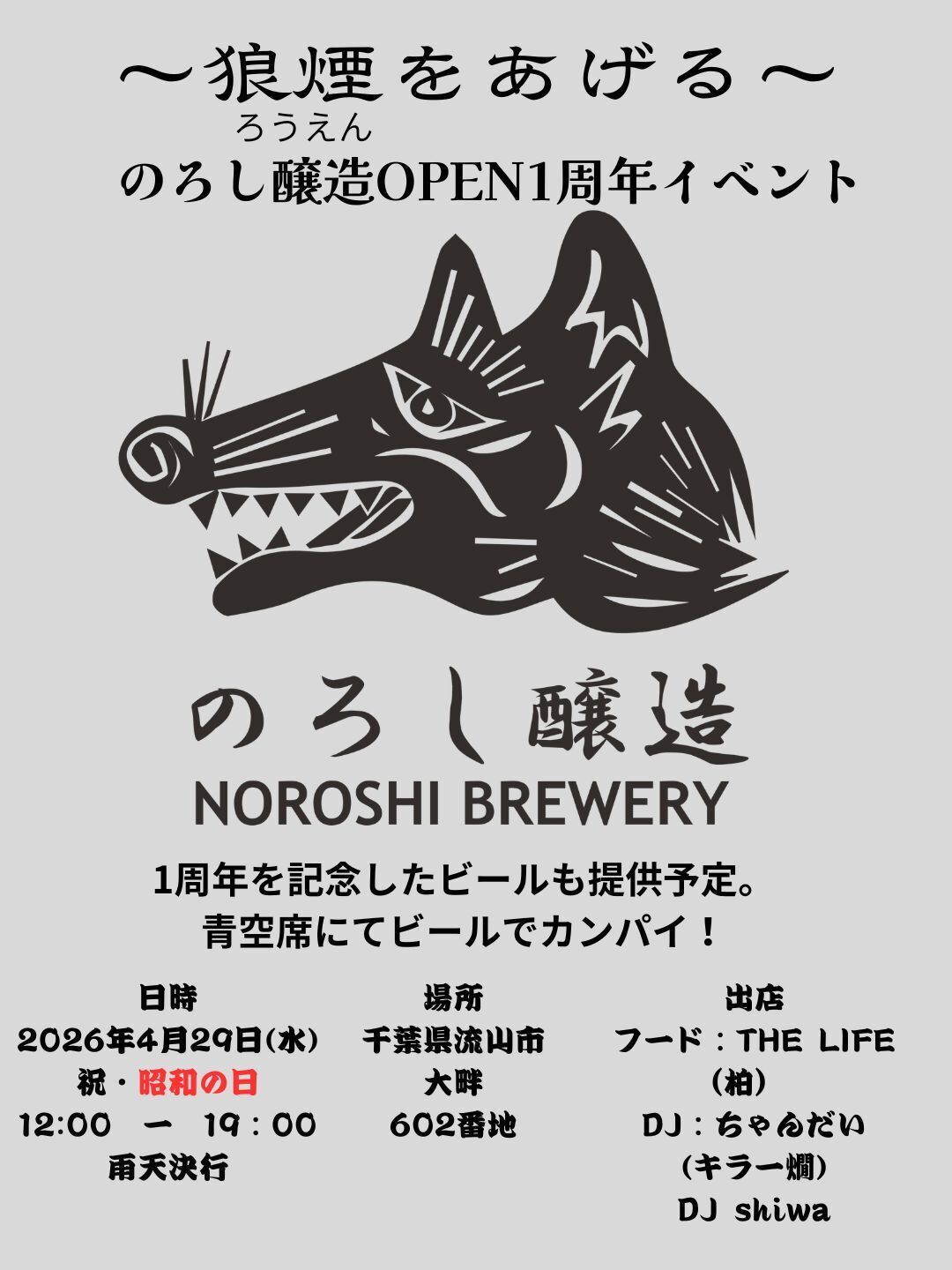 2026/03/28 19:00【クラウドファンディングご支援の御礼とご報告】ご支援者の皆さまへこの度は、のろし醸造のクラウドファンディングにご支援いただき、誠にありがとうございました。皆さまのお力添えにより、無事にすべての返礼品の発送を終えることができました。まずはこの場をお借りして、心より御礼申し上げます。振り返ればこの1年は、醸造所の立ち上げから始まり、設備の調整、仕込み、ボトリング、出荷と、すべてが手探りの連続でした。特に初期のボトリングでは品質にばらつきが出てしまうなど、ご迷惑をおかけしてしまったこともあったかと思います。それでも見守り、応援し続けてくださったこと、本当にありがたく、支えられてきた1年でした。「農家が造るビール」として、その土地で採れたもの、その時にあるものを活かしながら、流山という場所に根ざしたビール造りを続けてきました。まだまだ小さな醸造所ではありますが、少しずつ“かたち”になってきている実感があります。そしてこれから——のろし醸造は、さらに多くの方にビールを届けていくため、流山市のふるさと納税返礼品としての展開も準備を進めております。遠方の方にも、ご自宅で「流山の生きた味」を楽しんでいただけるよう、これからも挑戦を続けてまいります。また、4月29日 昭和の日にはTaproomオープン1周年を迎えます。ここまで続けてこられたのは、間違いなく皆さまの支えがあってこそです。当日は、感謝を直接お伝えできる場として、記念イベントも企画しております。クラウドファンディングという形で始まったご縁ですが、ここで終わりではなく、これからも続いていけたら嬉しく思います。ビールを通して、またどこかでつながれることを楽しみにしています。改めまして、この度のご支援、誠にありがとうございました。今後とも、のろし醸造を何卒よろしくお願い申し上げます。株式会社のろし醸造代表取締役 入江 匠 もっと見る