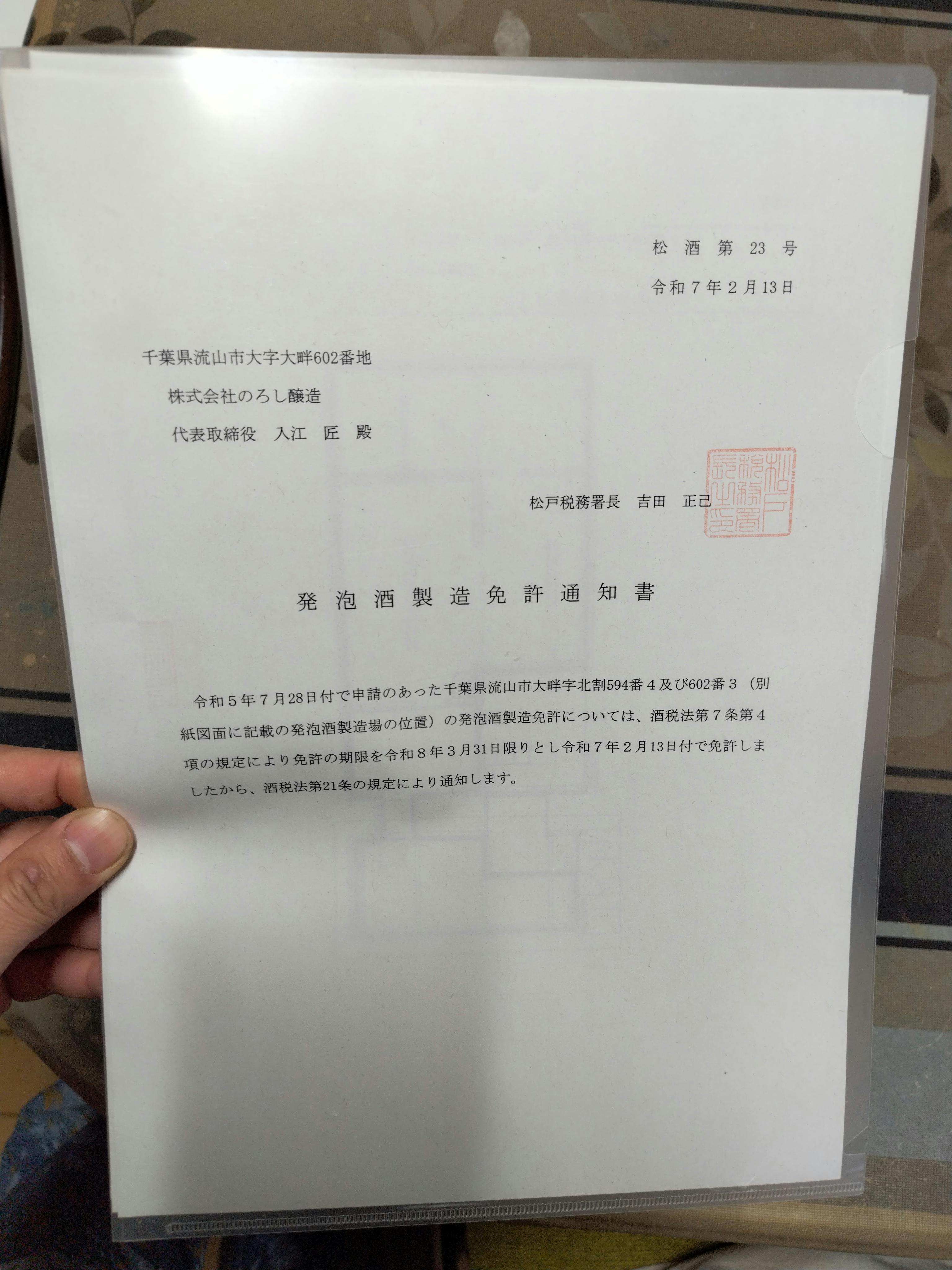 このたび、発泡酒製造免許を取得しました!ここまで来るのにたくさんの方々に支えられ、ようやくこのスタートラインに立つことができました。本当にありがとうございます!