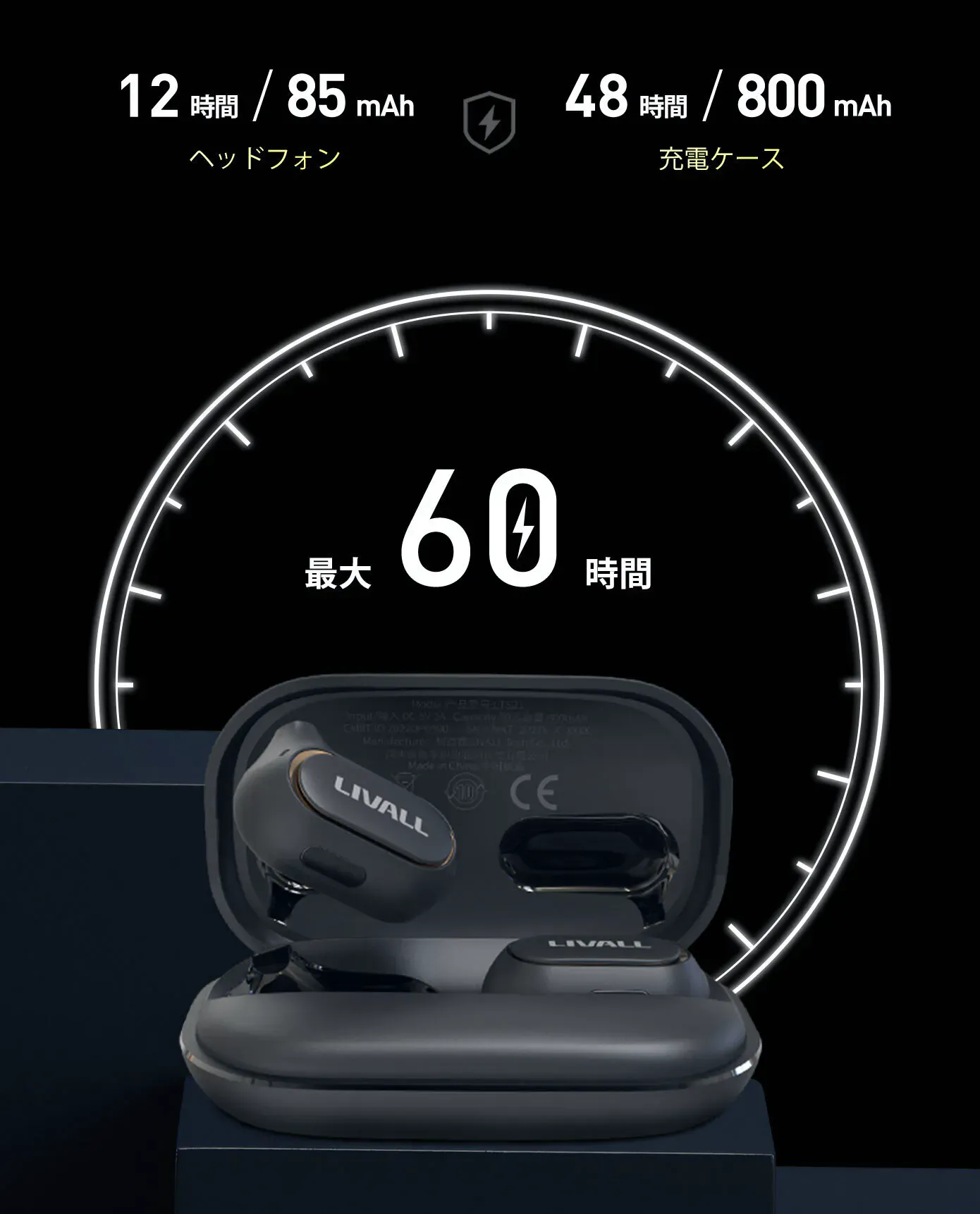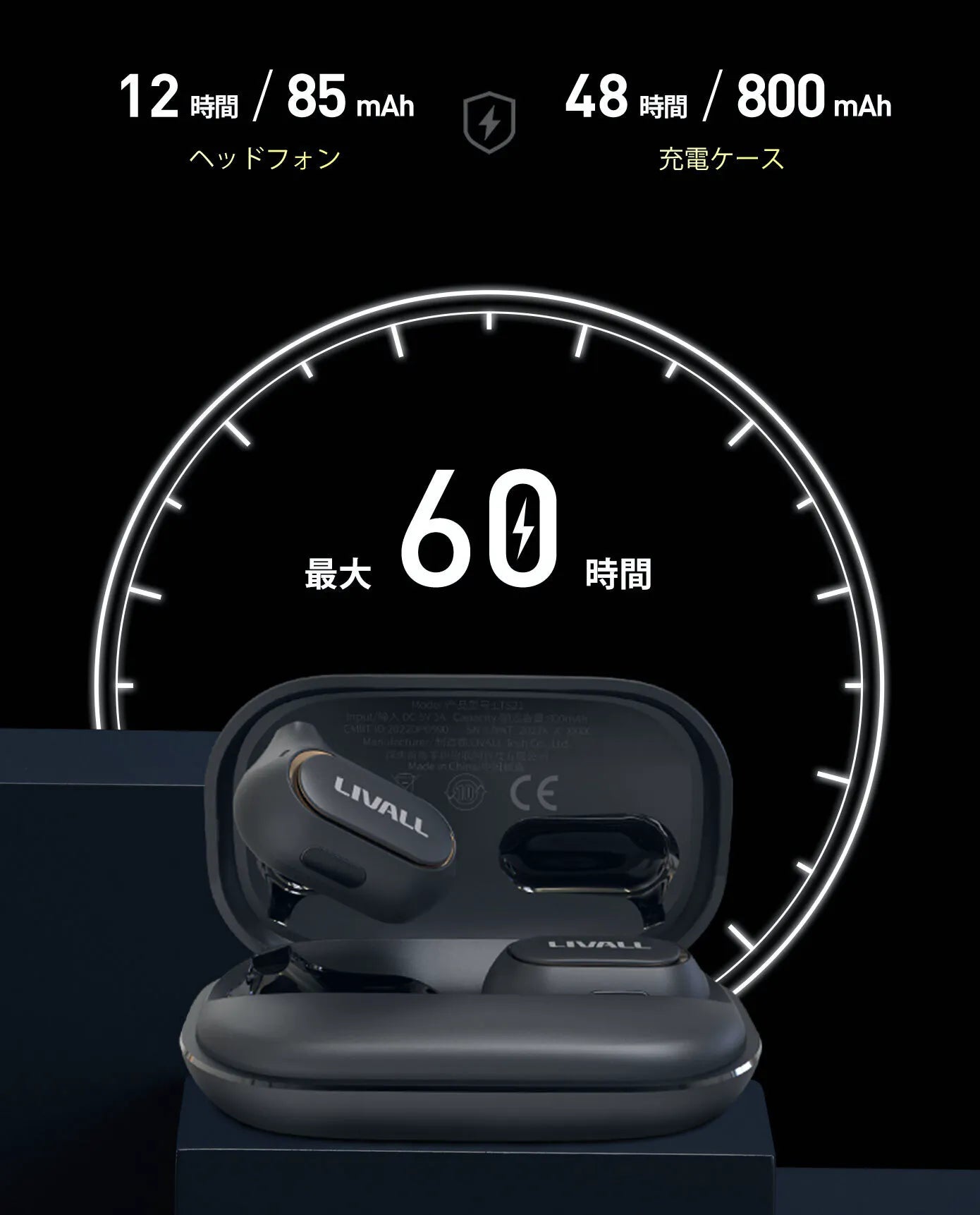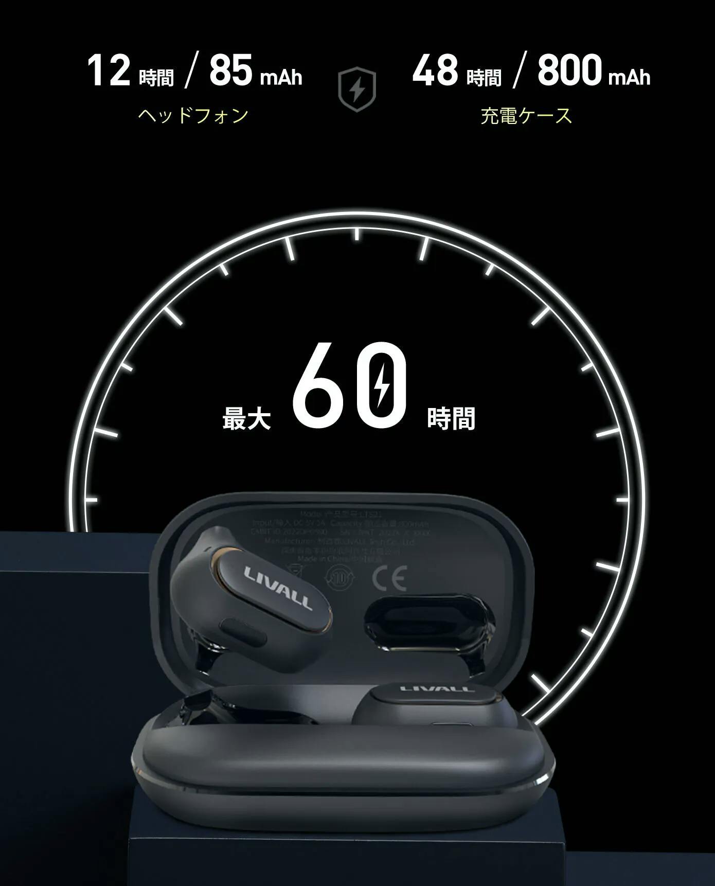 LTS21のスマートな省電力設計は、最大12時間の連続再生をサポートし、フル充電で最大60時間再生できる800mAhの充電ケース/パワーバンクを備えています。