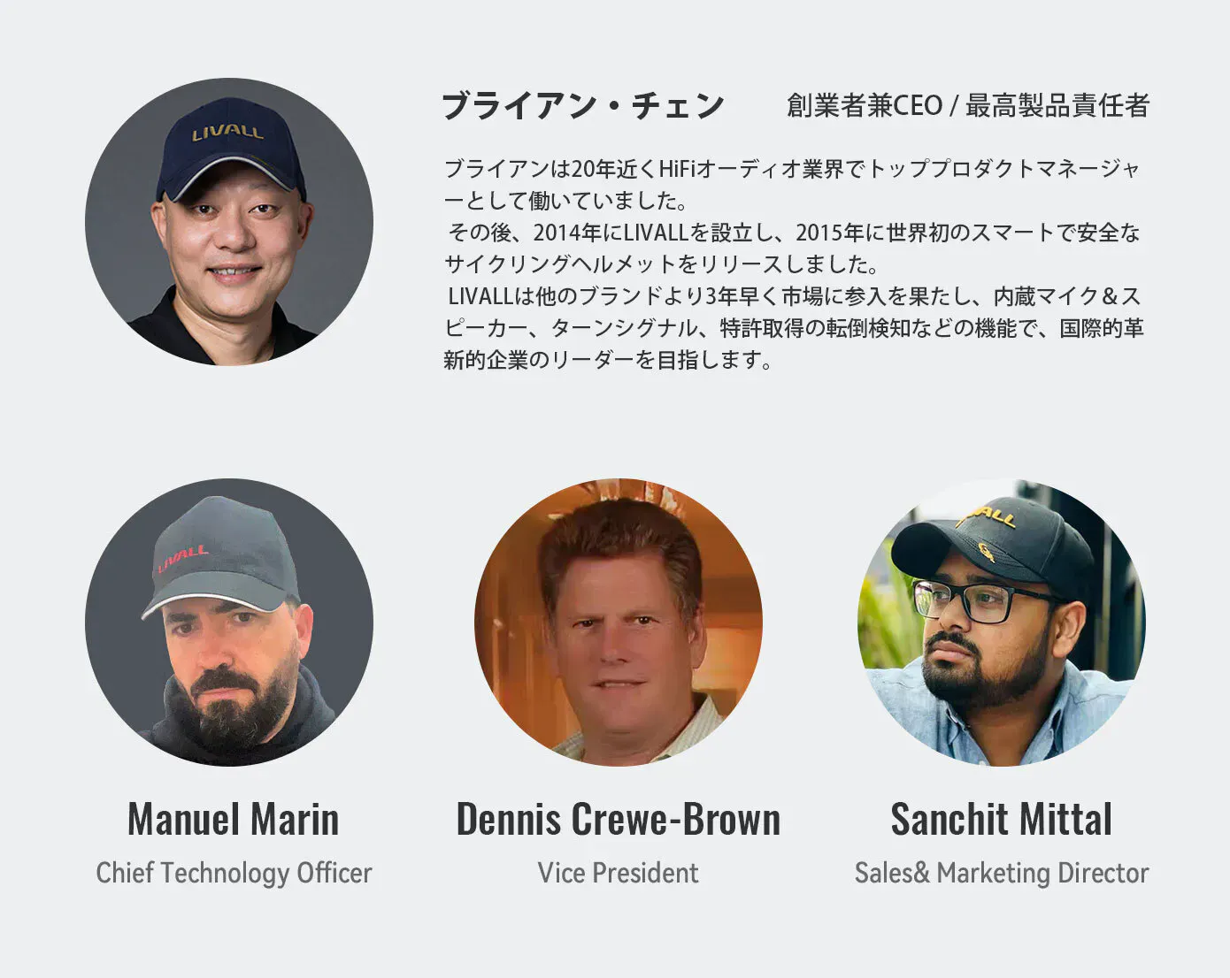 LIVALLのミッションは "あなたの安全を再定義する!" LIVALLは8年前に高精度なスマートヘルメットを設計することを目指したグローバル企業です。決して休むことなく絶えず新しい挑戦を続け、業界をリードするスマートヘルメットのプロバイダーとして成長しています。180以上の特許を持ち、業界で認められた50の国際的な賞を受賞しているLIVALLは、ヘルメットと革新的な技術を組み合わせ、ライダーに最も安全で快適なライディング体験を提供することに専念しています。LIVALLはスマート安全保護における世界最高のイノベーション企業として、スマートヘルメットからウェアラブル製品まで開発を行っており、このユニークなヘルメットもその製品のひとつです。スマートセーフティはLIVALLの最優先事項であり すべての製品は技術認証と安全認証を取得しています。