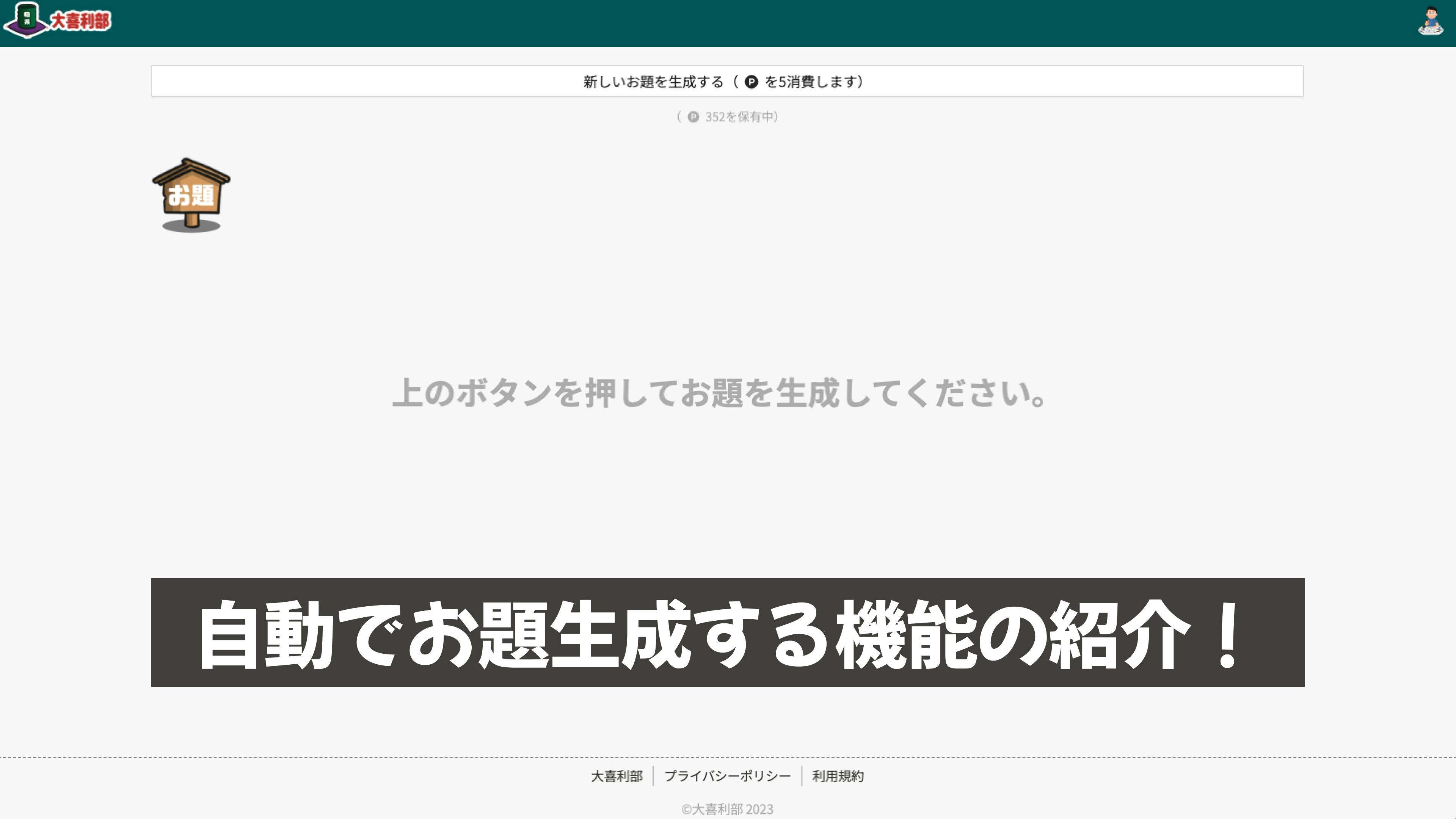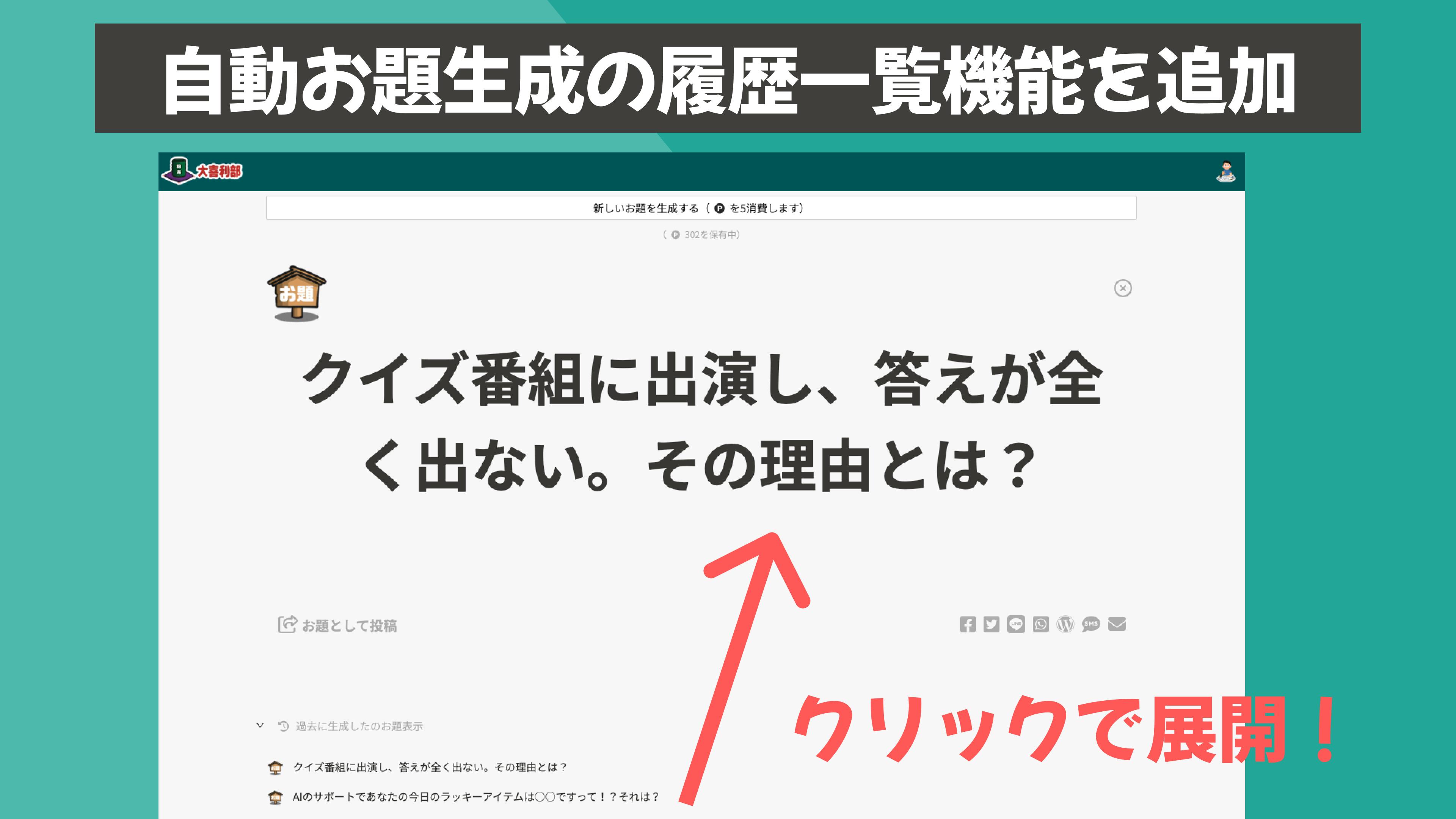 過去にAIで自動生成したお題の履歴一覧が表示できるようになりました。(動画あり)
