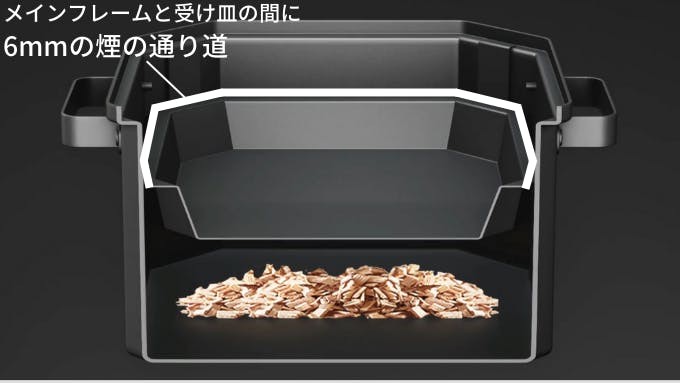 SMOKER-Xは、約6mmの狭い隙間により全体に煙を行き渡らせることで、あらゆる燻製を可能にします。