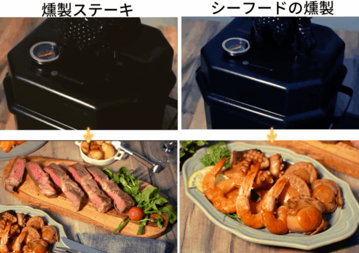 と様々な手法があり、これらをマスターすると食材の味を極限まで引き出すことが可能。SMOKER-Xは1台で全ての調理法が可能な上に、初心者でも誰しもが簡単に使える再現性の高さが特長です。