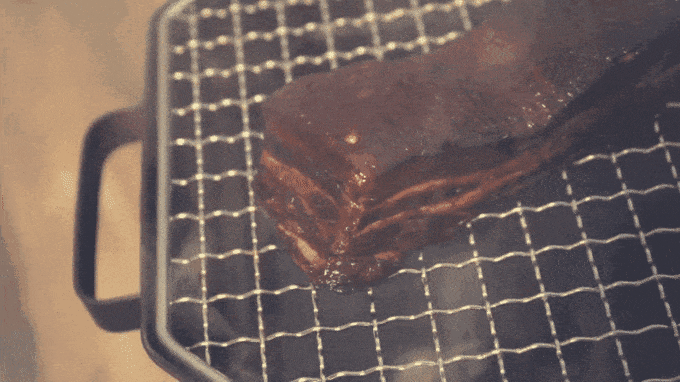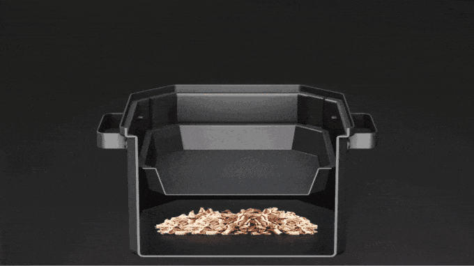 最も一般的な燻製手法はやはりこれ。 燻製チップに火を入れ、煙が通り抜けること でしっかりと燻します。 温度を上げたい時は、受け皿を外して燻すのもOKです!