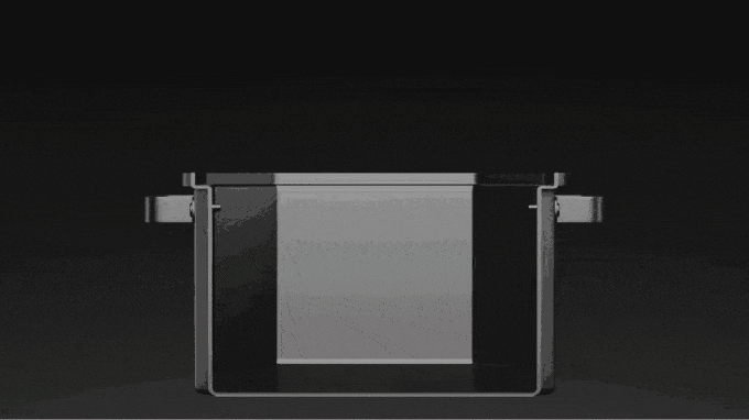 この独自のメカニズムにより、 熱燻・温燻・冷燻・ウォータースモークの 4種類の燻製を1台で作ることができる 特徴的な形状が完成しました。