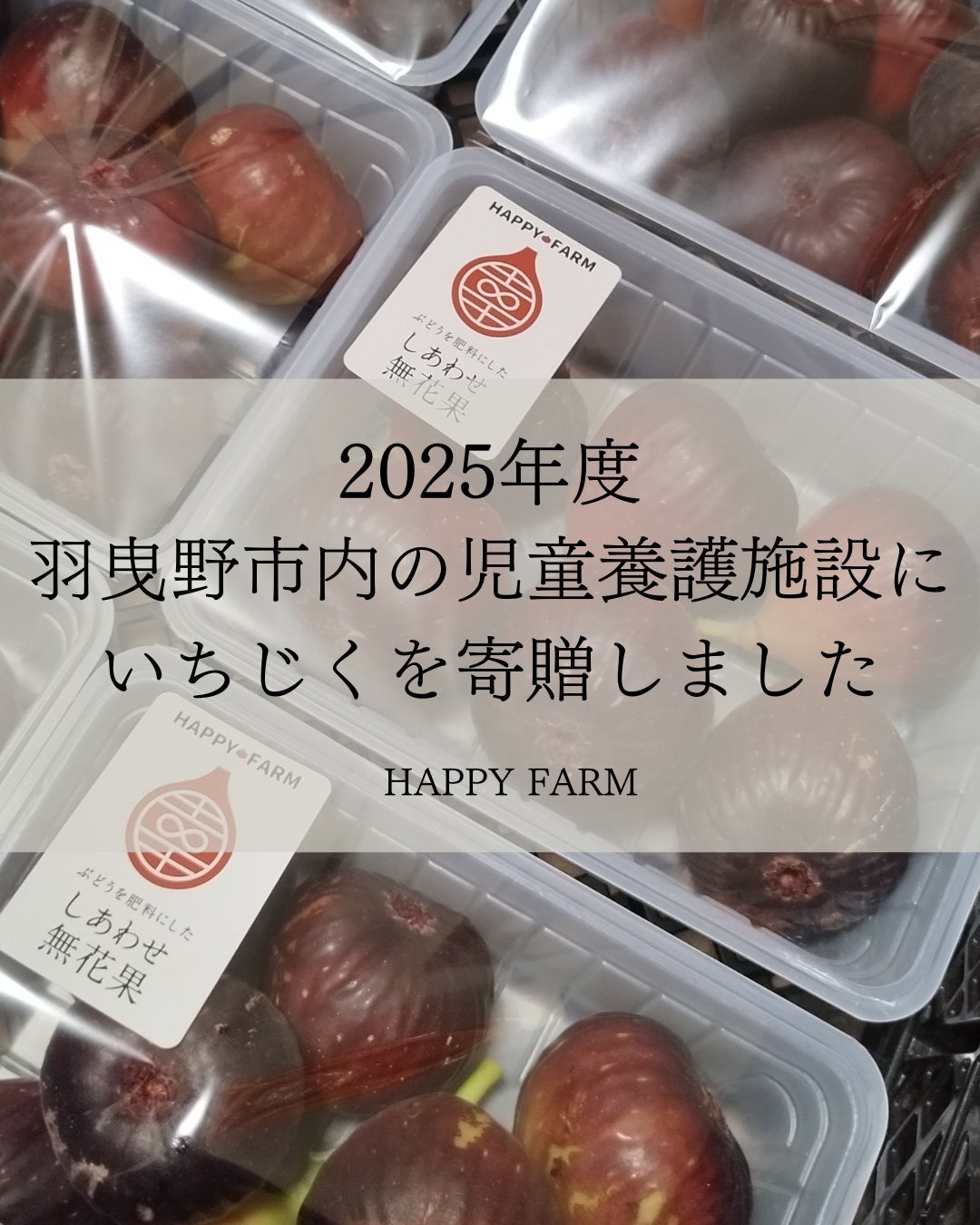 2025/11/09 12:36こんばんは。ハッピーファーム園主です。報告が遅くなってしまいましたが、9/25~26、今年も児童養護施設の子ども達に、いちじくを寄付してきました。今年の活動資金は、自己負担で行いました。2025年 児童養護施設への支援活動報告活動内容じゃがいも掘り・玉ねぎ収穫体験への招待および収穫物の一部寄贈さつまいも掘り体験への招待および収穫物の一部寄贈施設へのいちじく寄贈羽曳野市内の児童養護施設の子ども達:約150名寄贈したいちじく:200玉以上(34パック×約7玉)自己負担といっても、今年は無人直売所の売上で発生した過不足金がなぜか1万円程度プラスになりましたので、余剰金を募金とみなして活動資金の一部に割り当てさせていただきました。(無人販売のため原因わからず、返金もできないため)募金なのか、はたまた私の計算ミスなのかもしれませんが・・。たぶん募金かなと勝手に思ってます。もしそのつもりで募金していただいた方がいらしたら、ありがとうございました。児童養護施設へ関わる理由世の中には、色んな理由で家族と離れて暮らさないといけなくなった子どもたちが、施設で暮らしています。施設の方からの愛情や教育を受け育ち、いずれ社会に出て未来の日本を担っていく子ども達。私たちのような小さな農家でも、協力できることはないか。一人でも多く良い思い出になってもらえたら。いちじく好きになってくれたら。そんな思いで活動を去年からはじめました。今年は施設の広報誌に、わたしたちの取り組みを大きく取り上げていただいたり、施設の中を歩いて生活ぶりを詳しく案内していただいたりと、施設の方にも親切にしていただいています。これからも活動を継続するために来年以降も児童養護施設の子ども達への活動を継続するため、新規サービス「HAPPY LiNK.(ハッピーリンク)」を立ち上げました。児童養護施設への支援活動にご賛同いただける方は、ぜひハッピーリンクの購入を通じてご支援をお願いします。HAPPY Link.の詳細を見る以上で報告とさせていだきます。ご支援いただき、本当にありがとうございました。 もっと見る