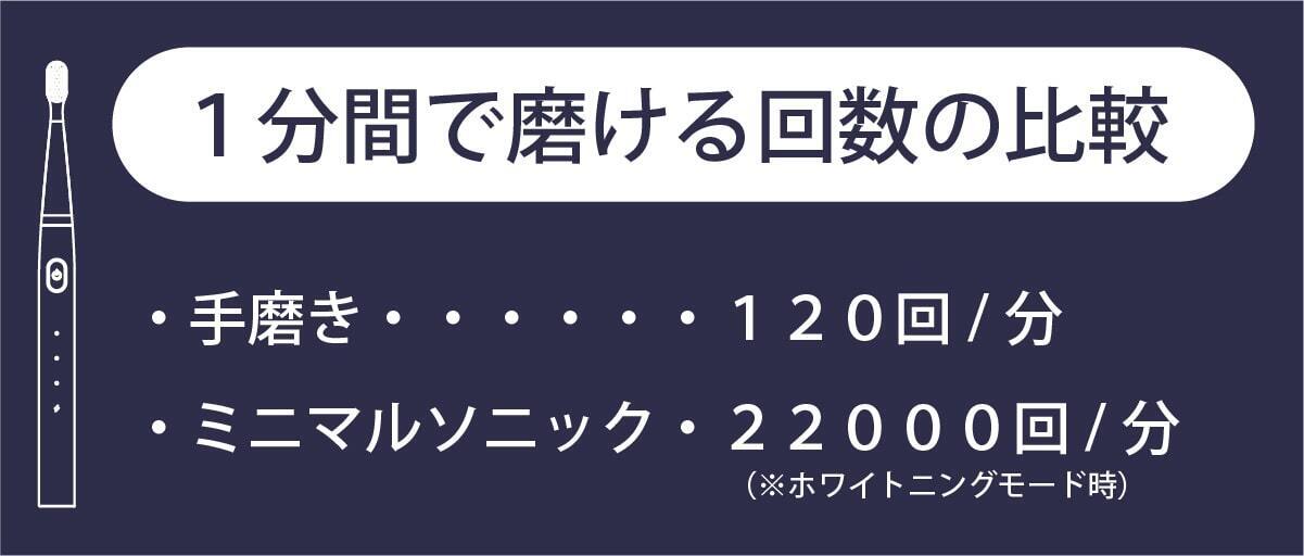 手磨きは1分間で120回磨けるのに対して、ミニマルソニックは1分間で22,000回磨けます。これだけパワフルな力を秘めたホワイトニングモードを搭載しています!