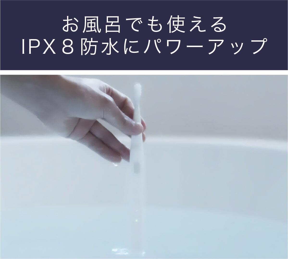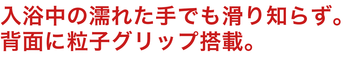 入浴中に歯を磨くには、防水機能の他に水滴などで磨く手が滑らないようにする必要があります。ミニマルソニックは「粒子グリップ」を搭載し、入浴中の歯磨きに最適です。