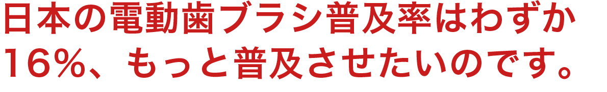電動歯ブラシの普及率はドイツの53.0%、アメリカの39.0%と比べて、日本は16%と言われています。まだまだ普及が必要だと私達は考えミニマルソニックが普及のきっかけになればと思っています。