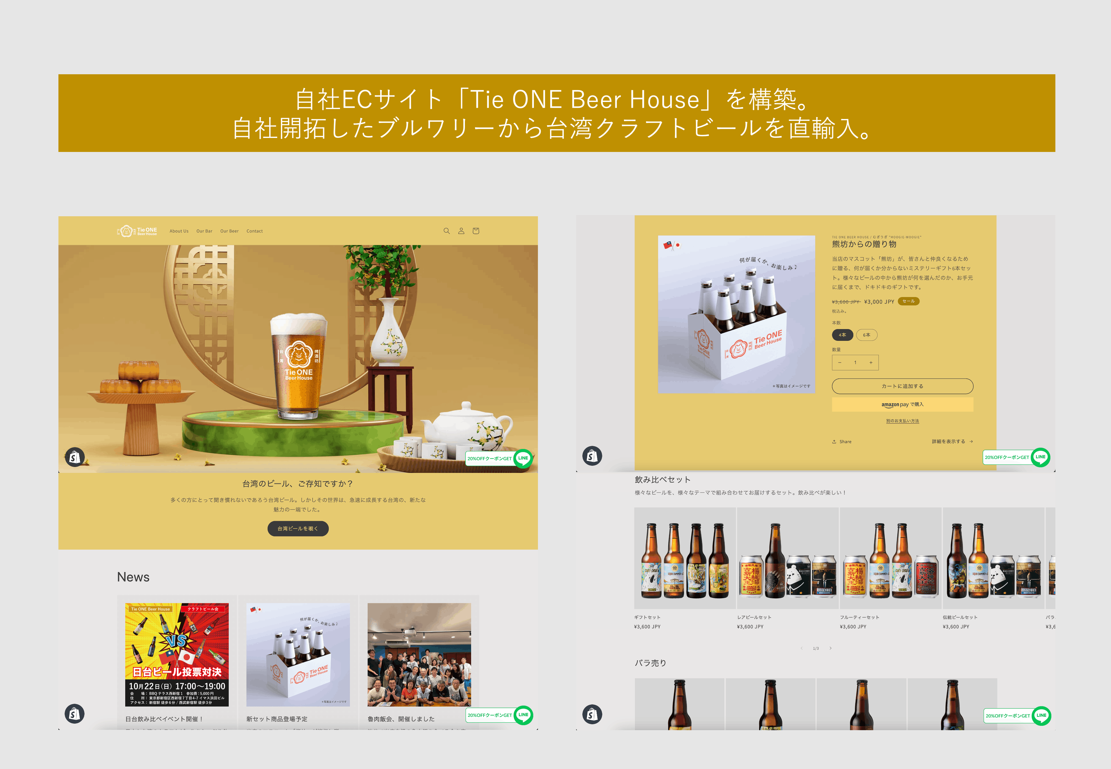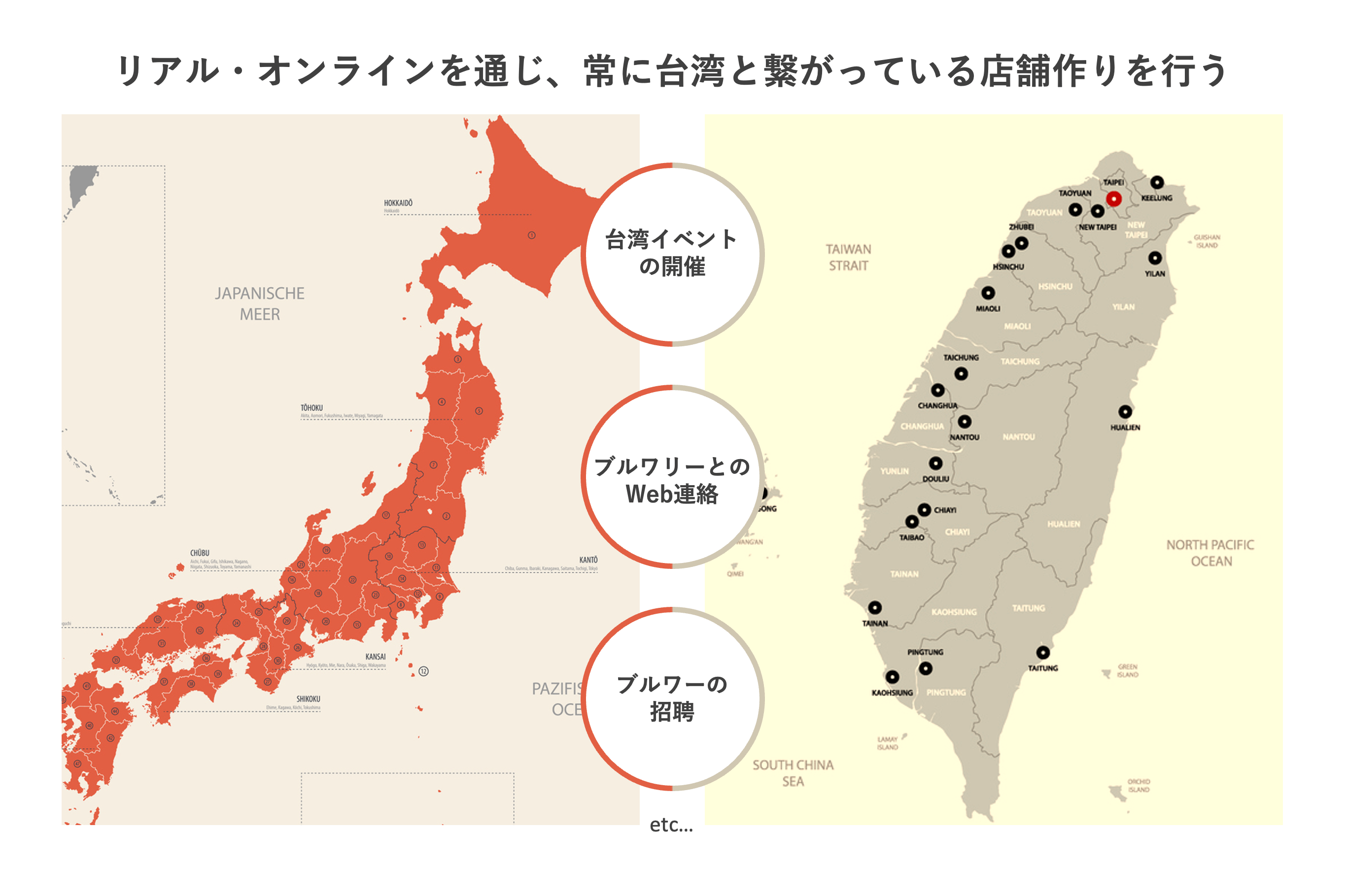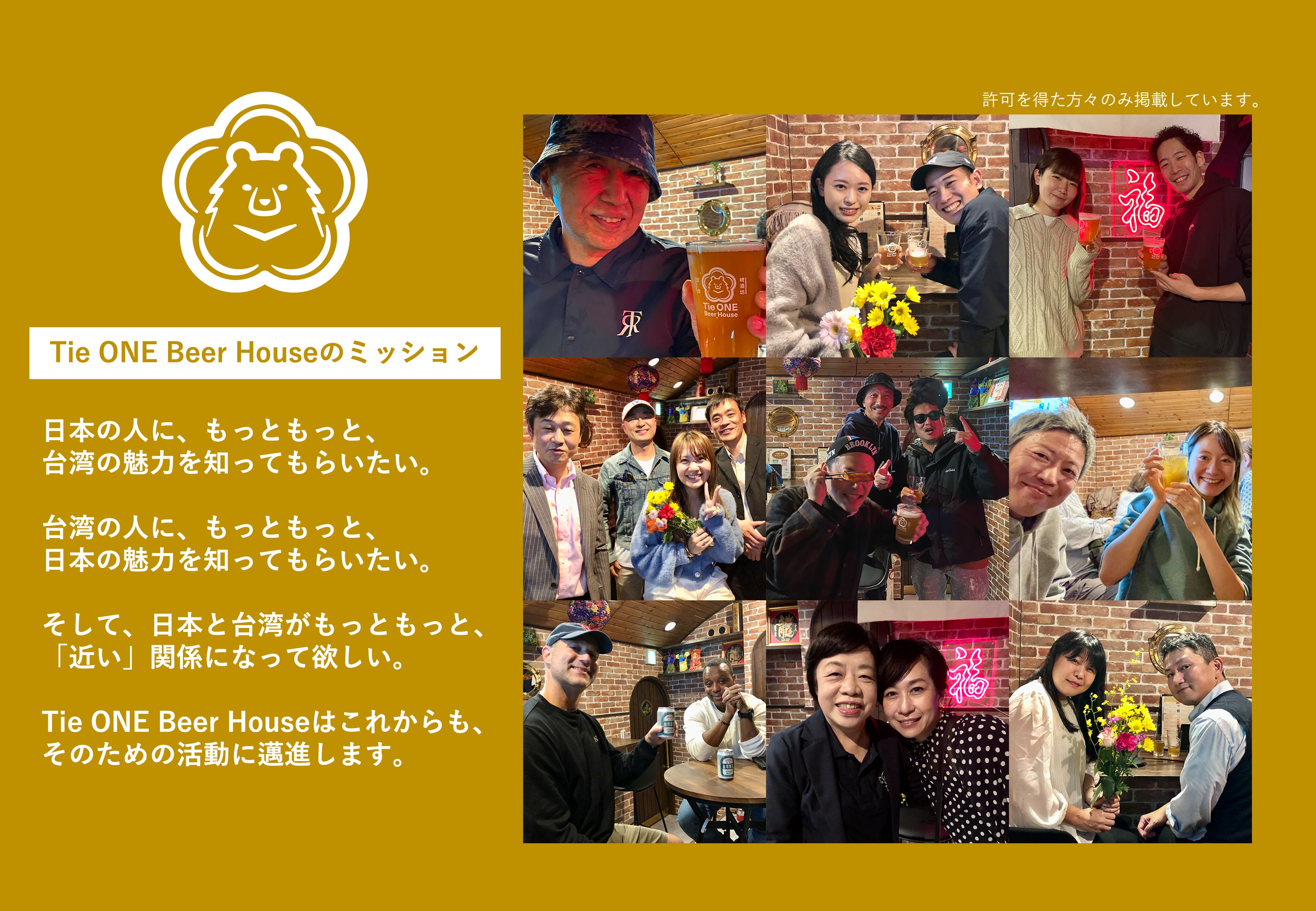 Tie ONE Beer Houseでは単純な「台湾のお酒やビールを出す」ことに留まらず、イベントの実施やワークショップの開催等の施策を通じて、リアルとオンラインの両面において台湾と繋がることができる「日台友好のベース基地」をイメージしてお店作りを行なっています。