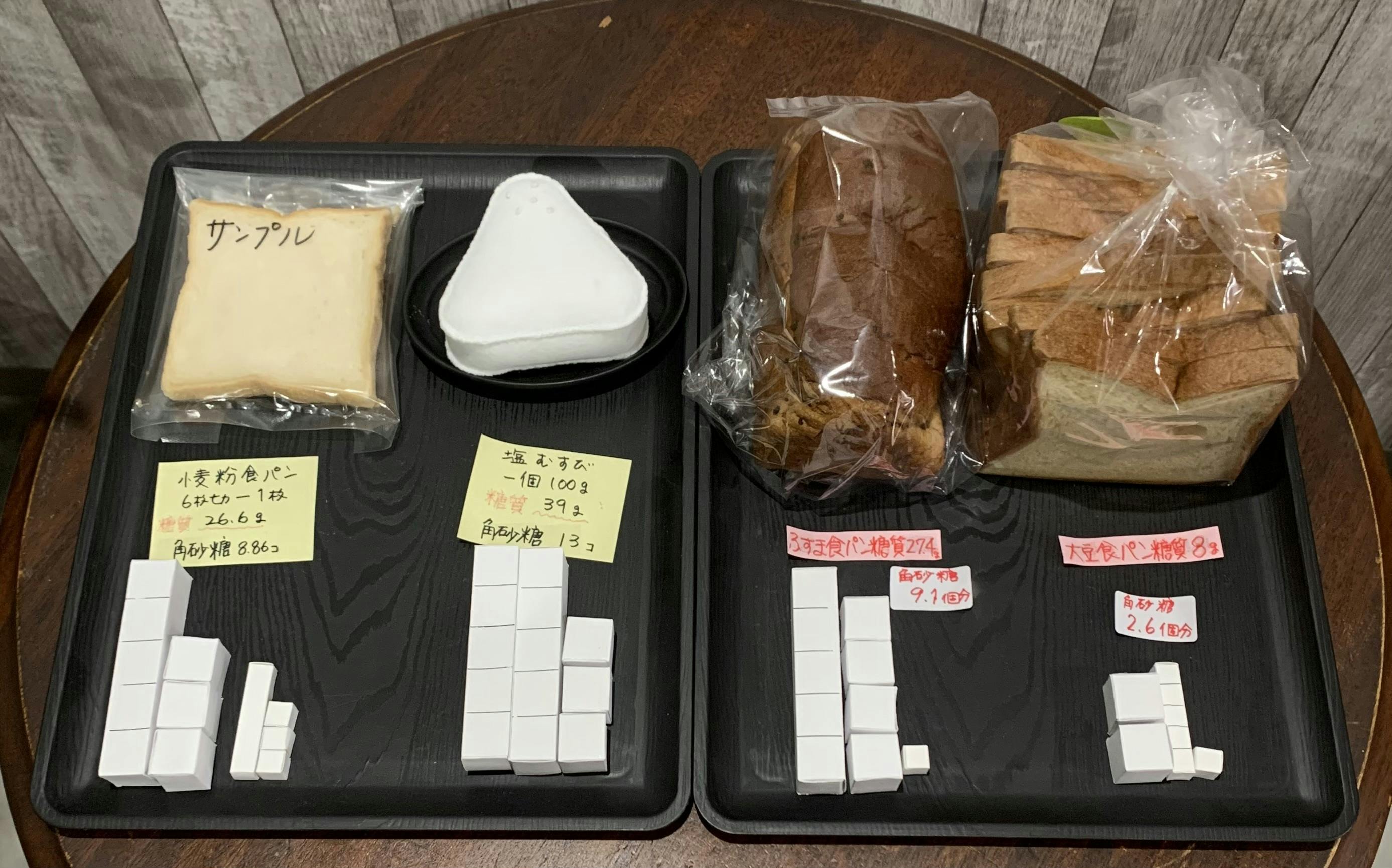 低糖質大豆食パンの糖質量は1斤8g(角砂糖2.6個)になります。