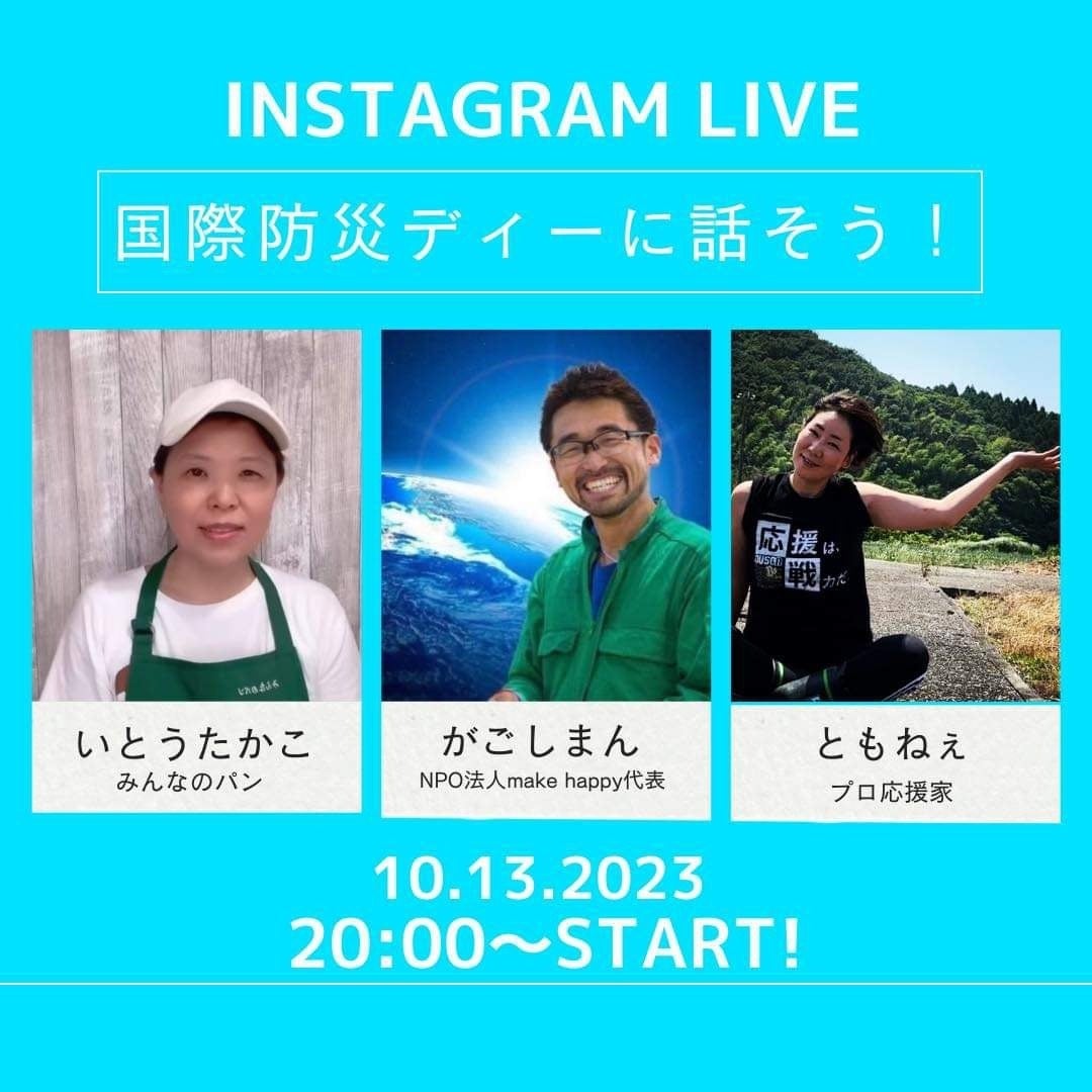 Instagram Liveで災害時の事を一緒に考えて下さい。コメントも受け付けておりますので、お気軽にお越しください。