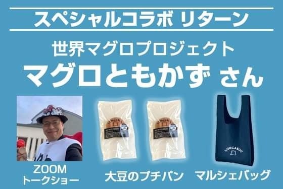 【みんなのパンPresents!みんなでツナがるマグロともかずトークショーZOOMオンライン】お届けする内容12月2日(土)20:00 から開催される マグロともかずトークショーに参加いただけます。低糖質 大豆プチパン 2個マルシェバッグ(ネイビー)オンラインツールはZoomを使用します(ご参加いただくURLはメッセージにてお送りいたします)時間は60分の予定です内容はトークショー、参加者同士の交流等になります。マグロともかずさんプロフィール感動発見プロデューサー講演芸人I・k・e 株式会社 代表取締役世界マグロプロジェクト代表日本講演新聞Voicy パーソナリティ勝手に映画『こんな夜更けにバナナかよ』を応援する会 代表マグロともかずさんは、北海道でラジオのパーソナリティーをされていますので、楽しいトークショーが開催されますので、是非、是非、ご検討してご支援をお願い致します。