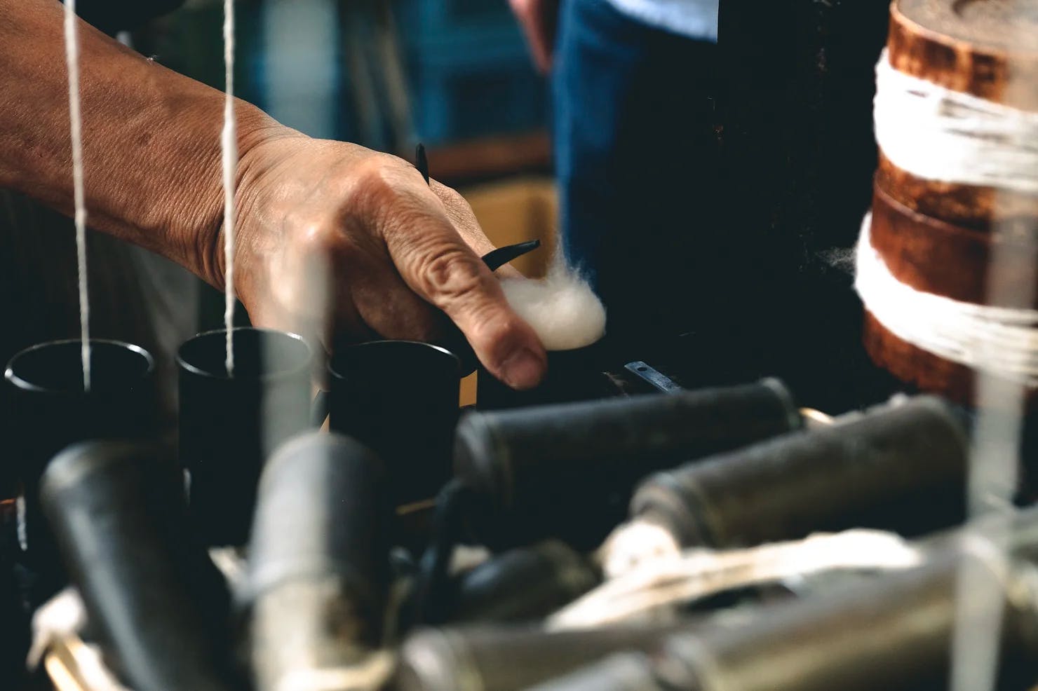 ガラ紡は非常に手間と時間を要する技術で、現在稼働しているのは全国で2、3軒。機械でも熟練した職人の技術が大きく、手紡ぎに近い仕上がりになります。