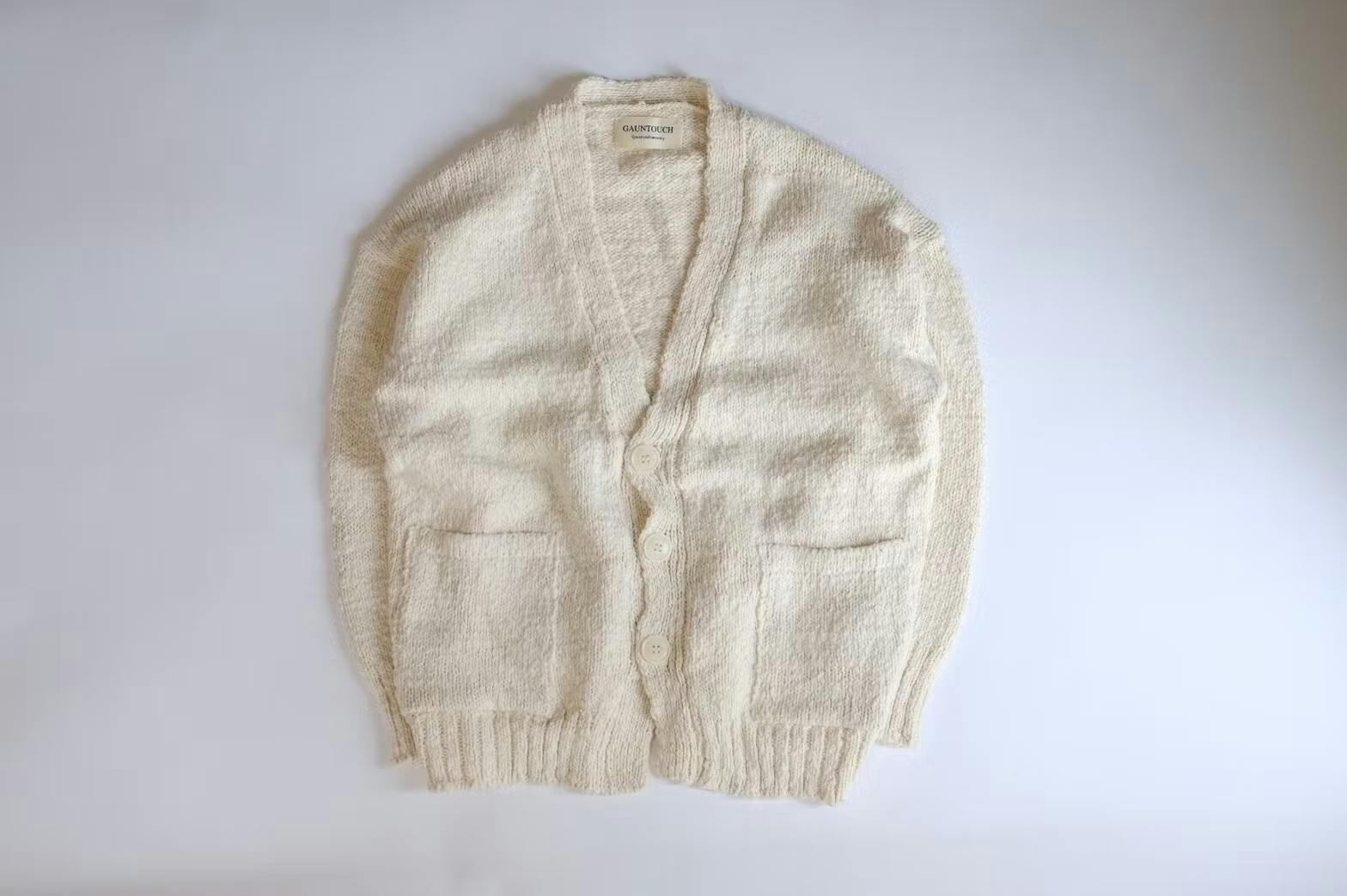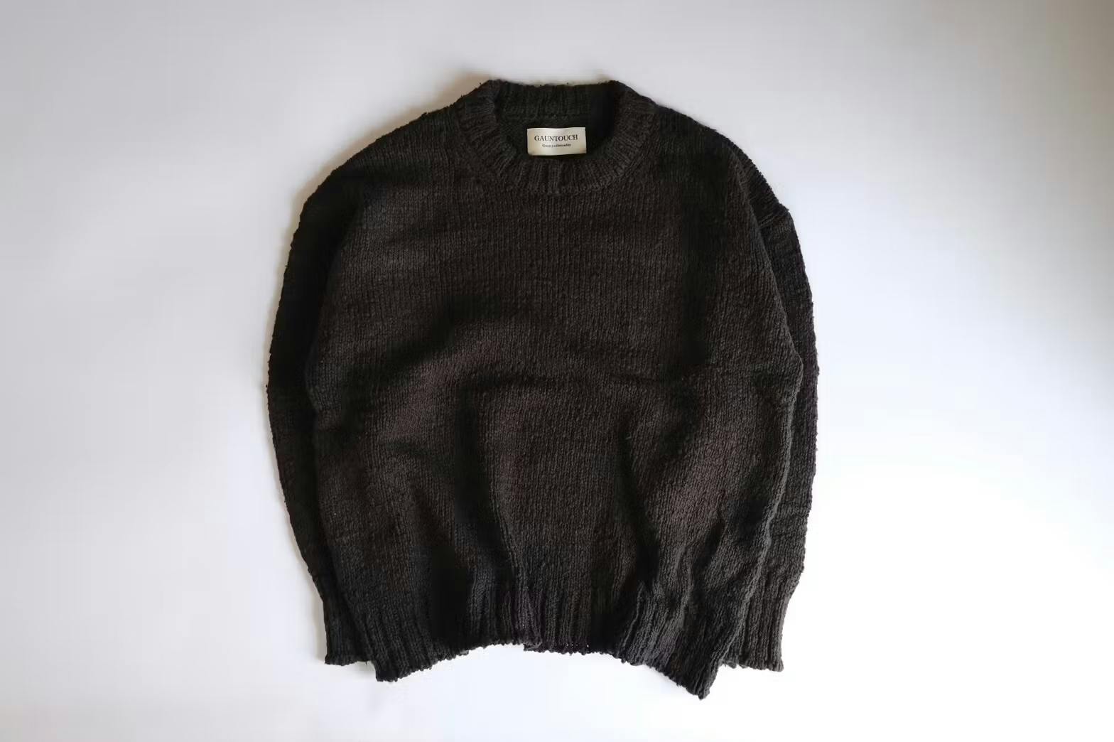 一見、時代に逆行しているようにも見えるGAUNTOUCHですが、個性あふれるニットを通じ、大量生産ではけっして出せない荒々しさの中にある、やさしさをお伝えできる存在だと思っています。