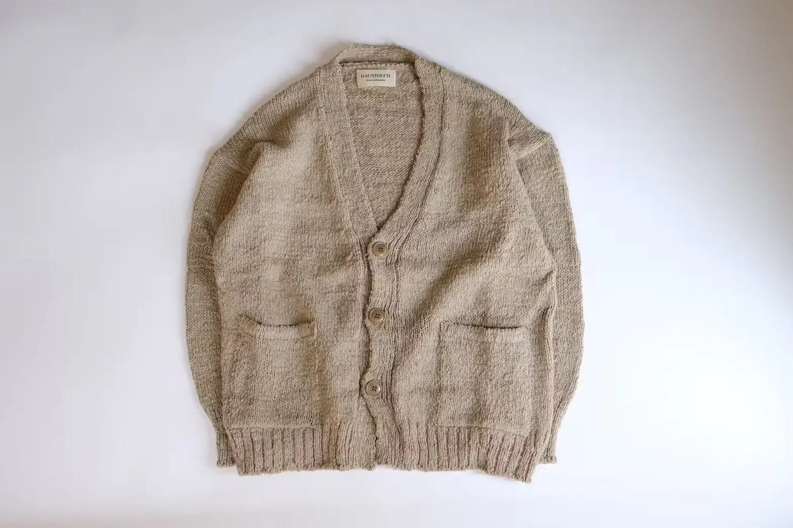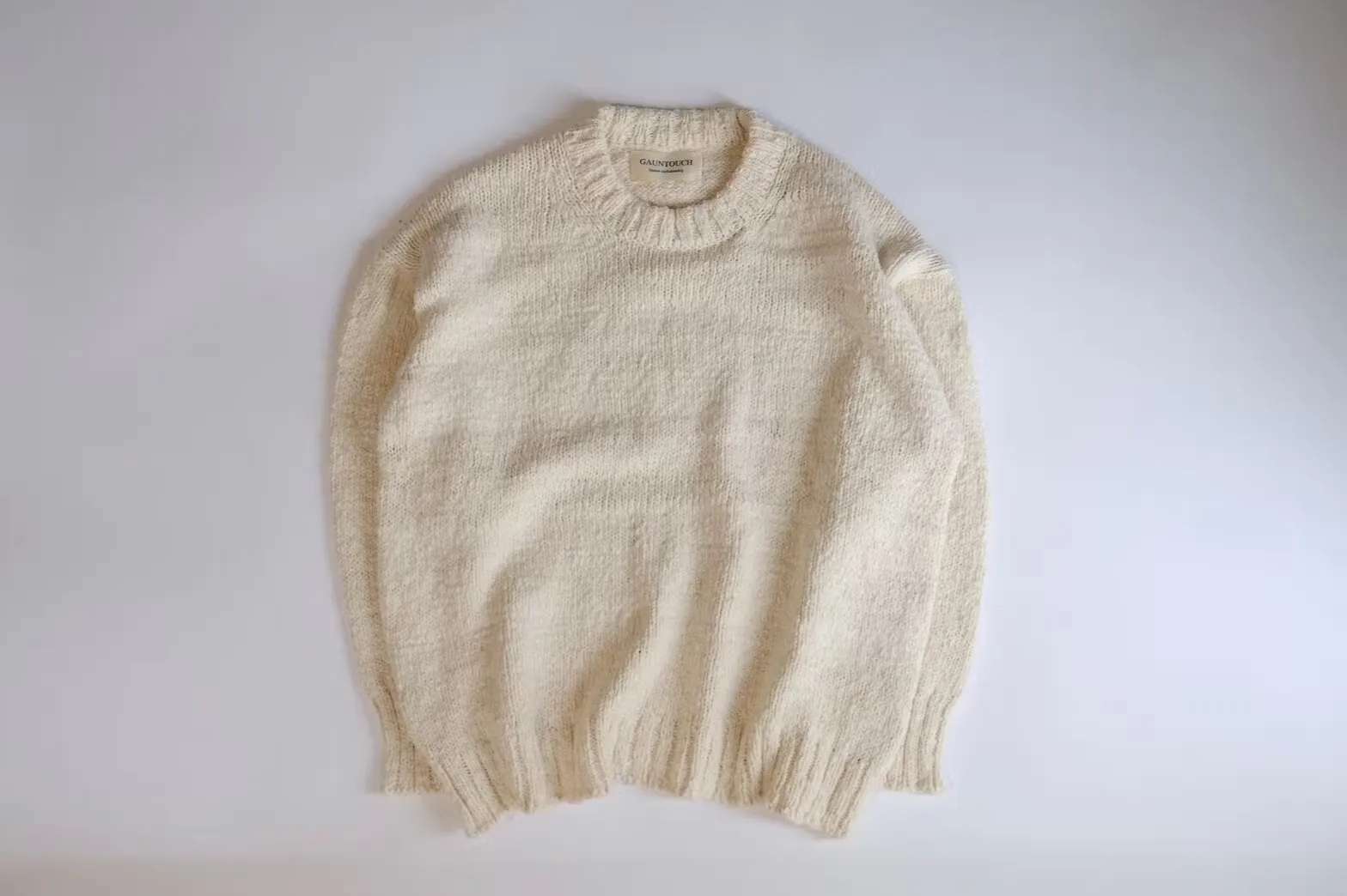起伏のある糸が空気を含み、肌当たりはふんわり柔らか。シンプルだからこそ、素朴な表情が引き立ちます。自然体でホッとするような心地良さが、GAUNTOUCHの何よりの魅力です。