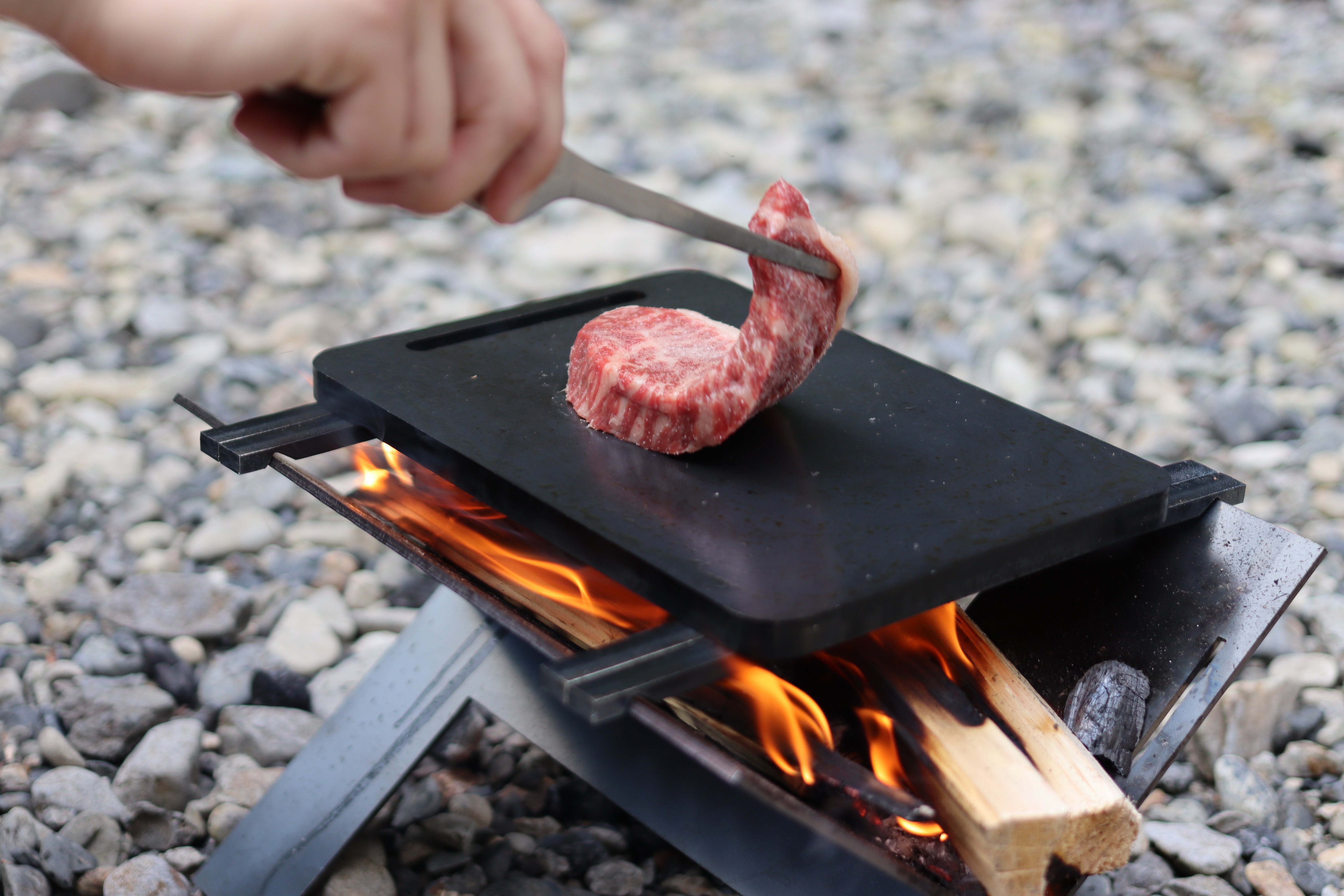 自社や自分たちにできることは何かを考え抜き、「鉄板を扱う会社だからこそ届けられるものにしよう」という考えから、”アウトドアで使える極厚鉄板”を着想。不器用な僕たちのような無骨で無駄のないシンプルな製品が、肉と向き合うことに集中できる時間を提供できるのではないかというコンセプトで製品を作りました。